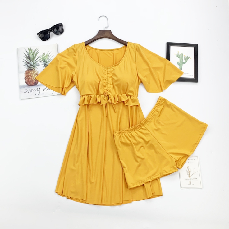 新款大码泳衣女裙式连体保守遮肚显瘦加肥带袖遮肉泳装如厕平角裤