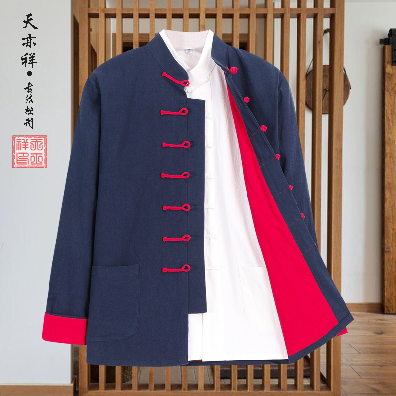极速春季双层挂里亚麻中s老年爸爸唐装男式外套复古盘扣中国风居