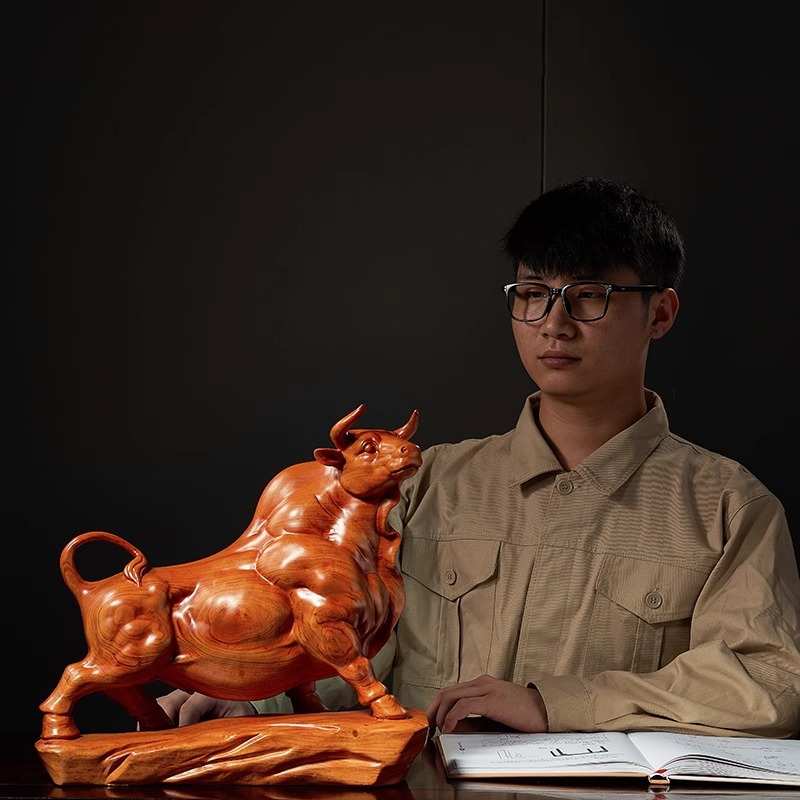 花梨木雕牛摆件实木雕刻生肖牛木质十二生肖牛开业木雕摆件礼品