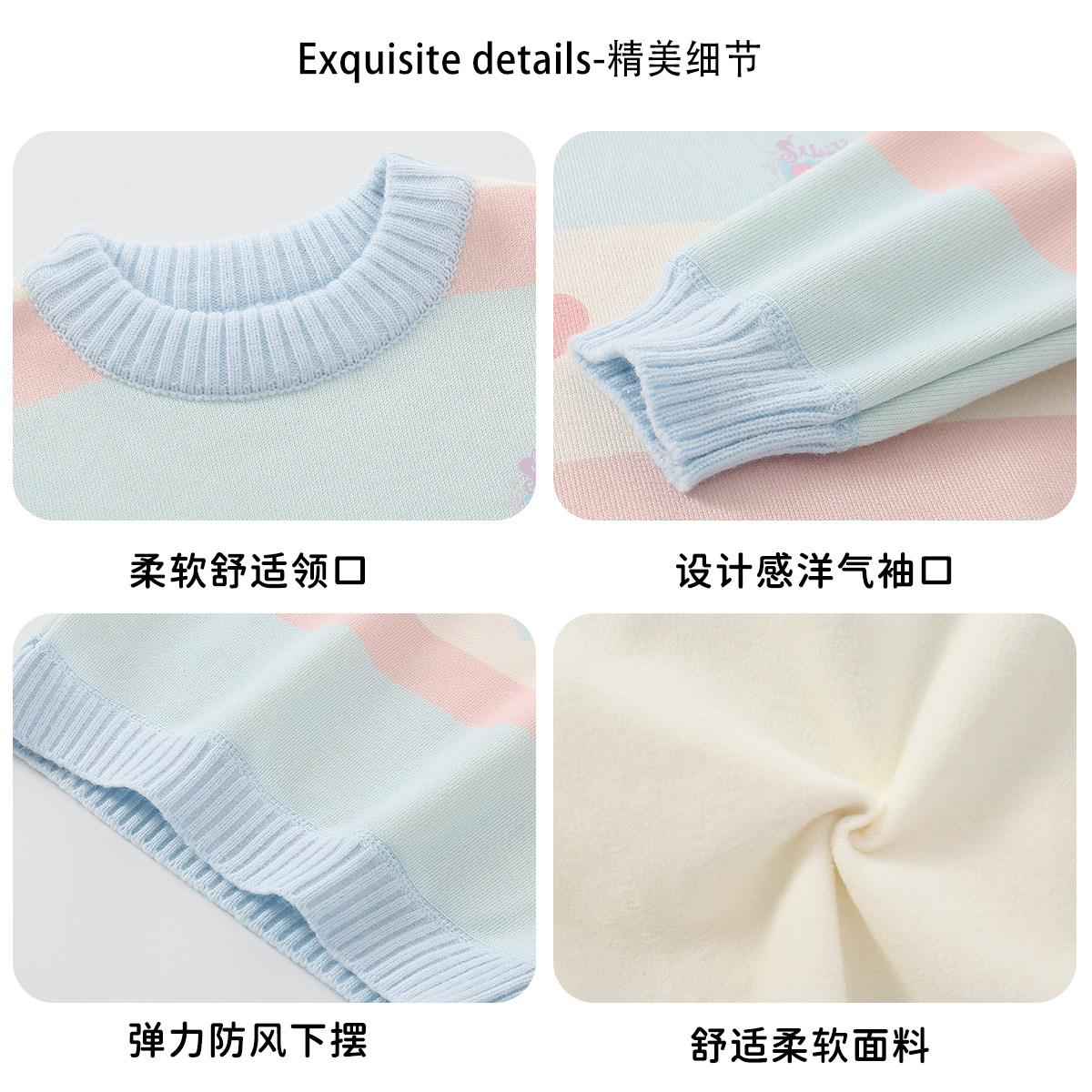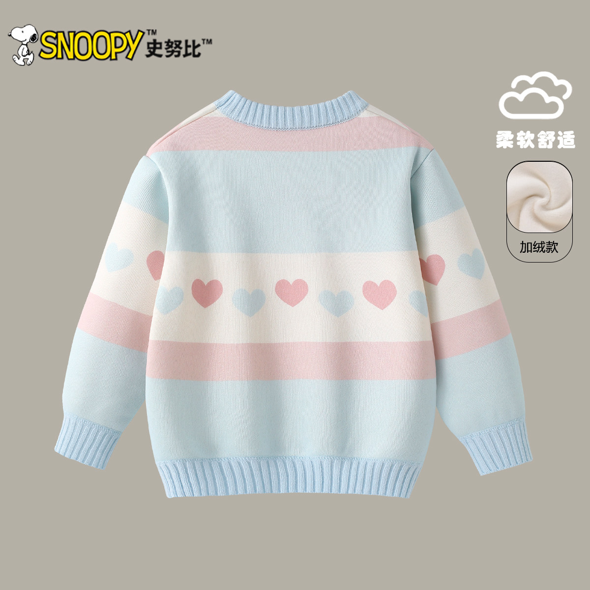 史努比女童冬季毛衣2025新款儿童加绒打底上衣女孩秋冬保暖针织衫