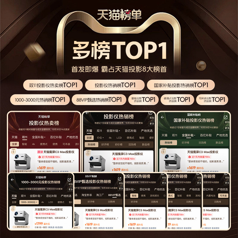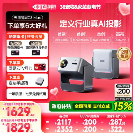 【李佳琦直播间&家装潮电节】天猫魔屏C3Max投影仪政府补贴家庭智能影院便携家用超高清投影卧室投屏真1080P