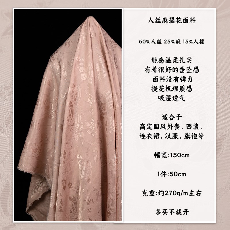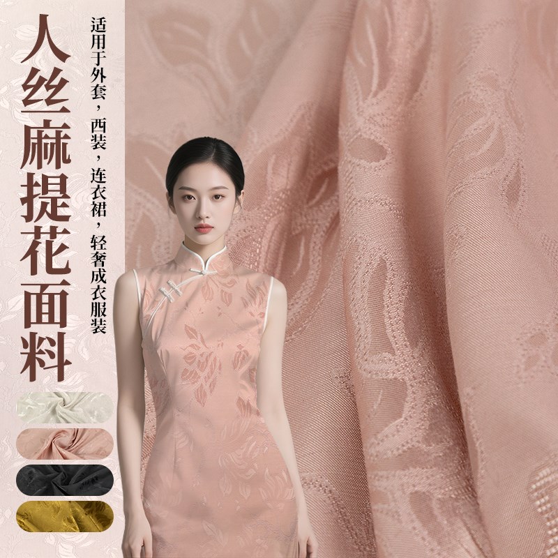 人丝麻提花布料新中式国风旗袍汉服连衣裙外套西装设计师肌理面料
