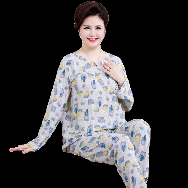 2024新款中年妈妈装棉绸睡衣女款长袖春秋老人奶奶家居服套装夏季
