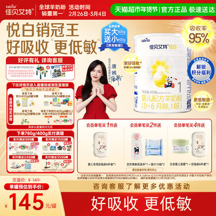 新国标荷兰进口佳贝艾特悦白1段400g婴幼儿羊奶粉天然A2蛋白低敏