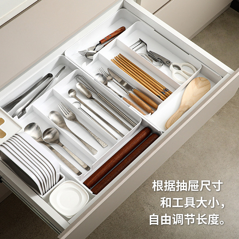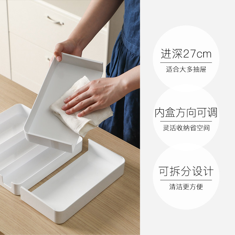 【自营】日本霜山抽屉收纳盒厨房可伸缩分格餐盒文具化妆品整理盒