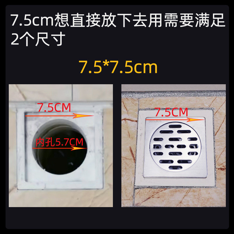 碧桂园7.3cm小地漏7.5cm不锈钢304加厚改造防臭防虫双用户外淋浴