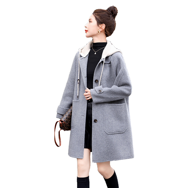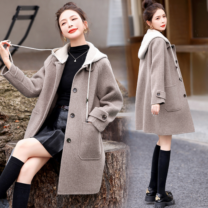 女装2025秋冬新款休闲百搭连帽双面羊毛呢大衣中长外套上新衣流行
