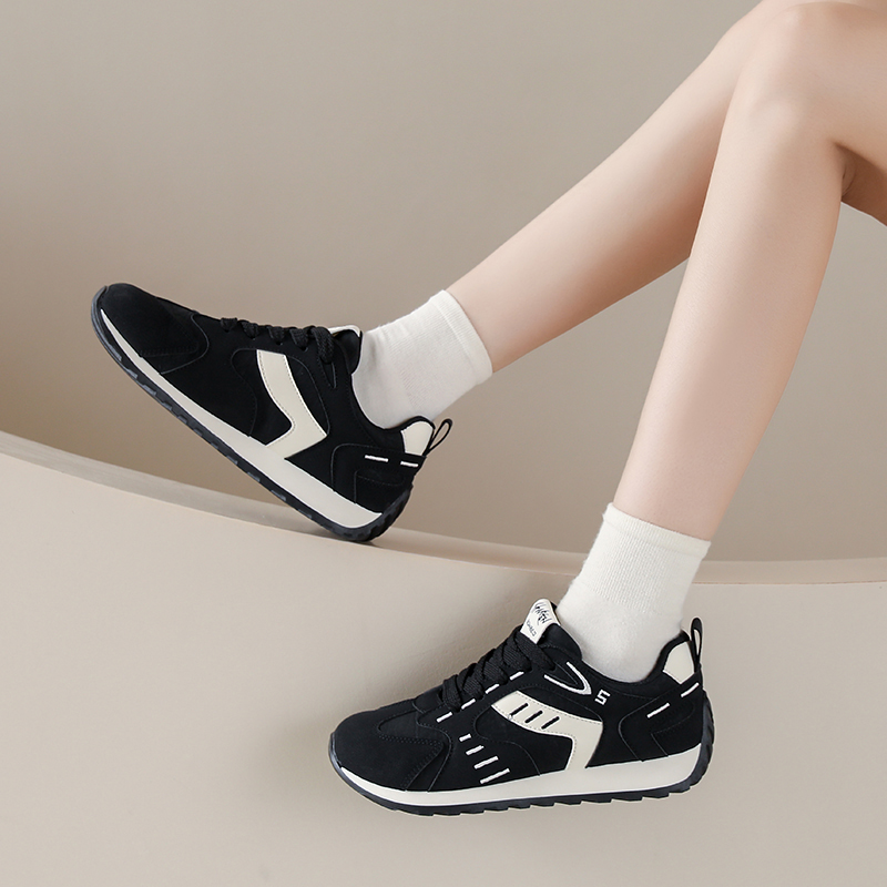 黑色阿甘鞋女皮面秋季2025新爆款轻便防滑运动鞋不累脚软底女鞋子
