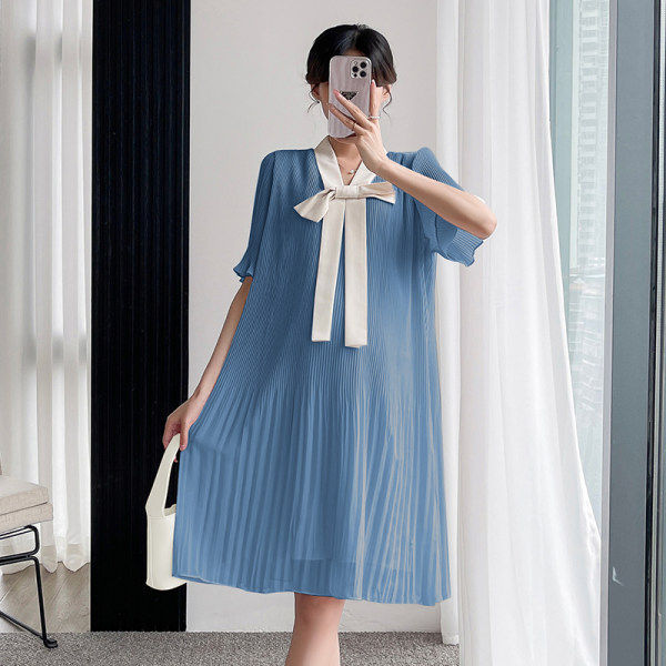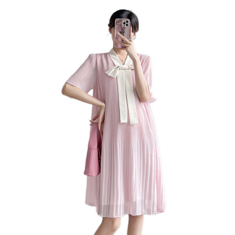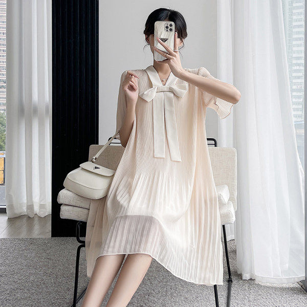 大码孕妇夏装连衣裙时尚网红气质温柔风蝴蝶结雪纺裙子宽松200斤