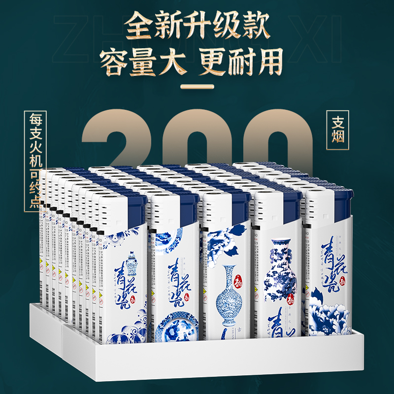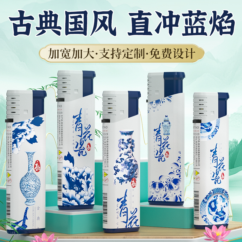 50支国风青花瓷耐用防风打火机直冲批发定制订做印字加厚新款正品