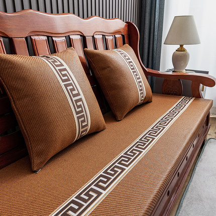 中式红木沙发垫纯色夏季藤席高密度加厚海绵防滑客厅实木椅垫定制