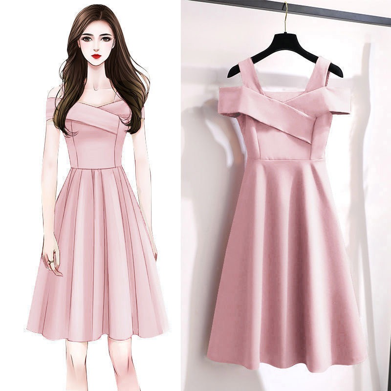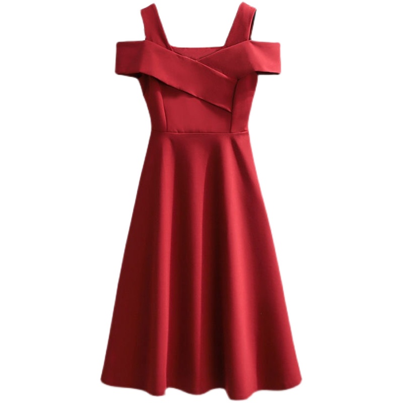 宴会大码新款黑色礼服连衣裙胖mm气质性感露肩裙小个子a字中长裙