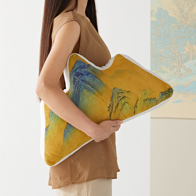 千里江山山形客厅沙发抱枕靠山枕家居装饰民宿榻榻米飘窗异形靠垫