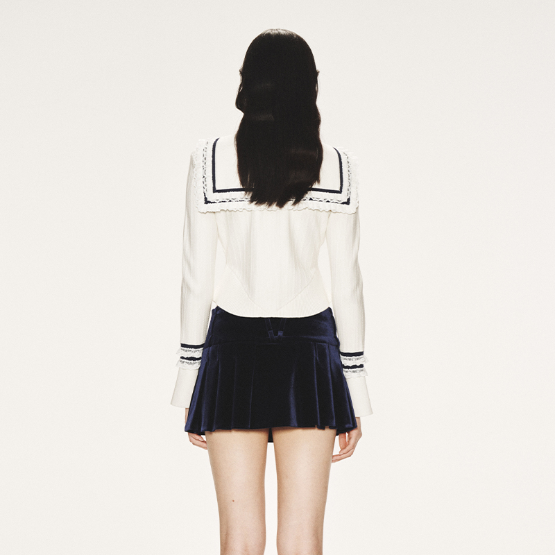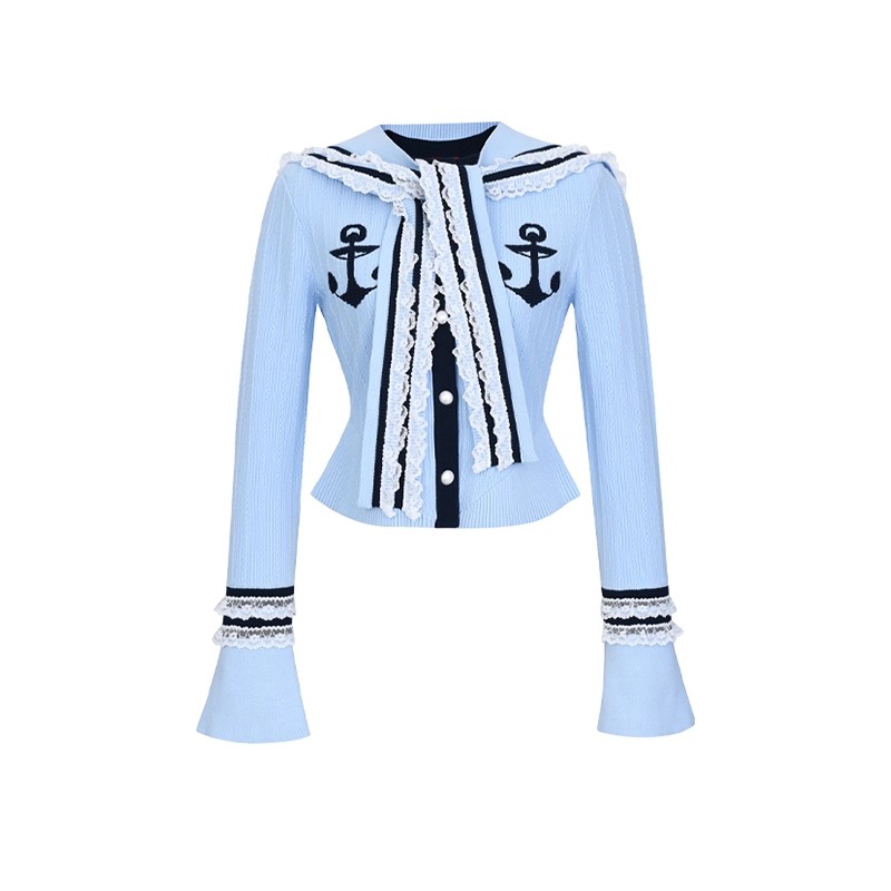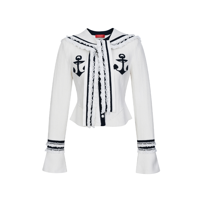 lefame拉飞姆学院风蕾丝花边修身针织开衫(配披肩)