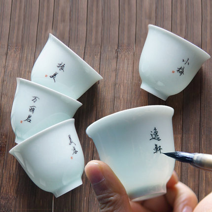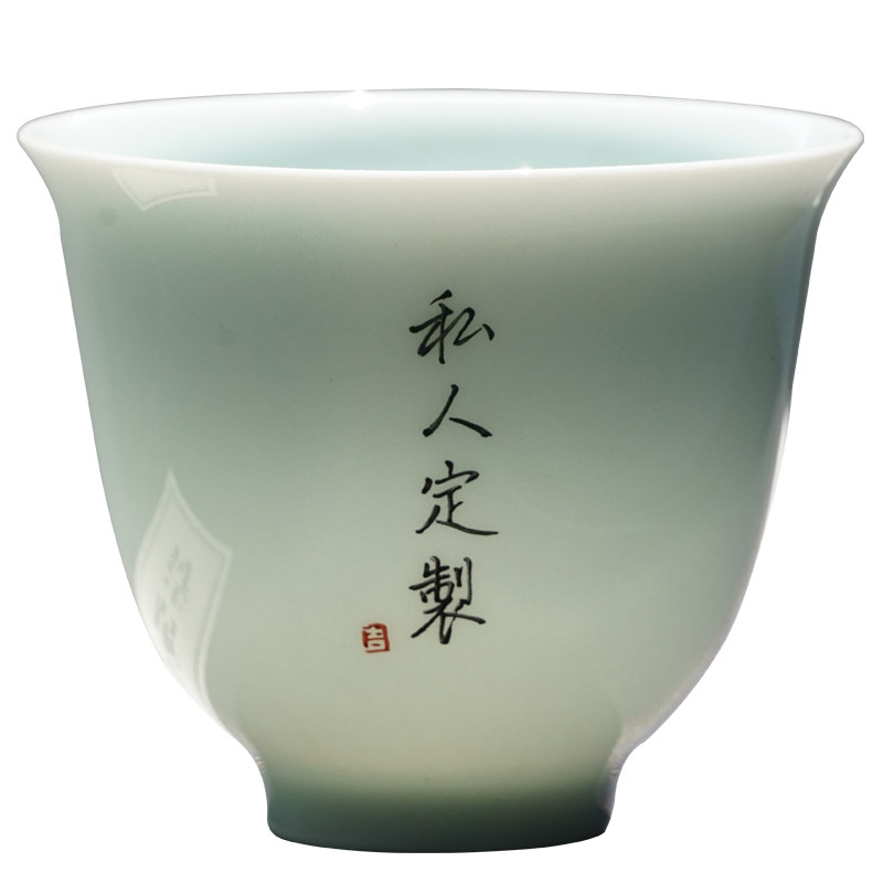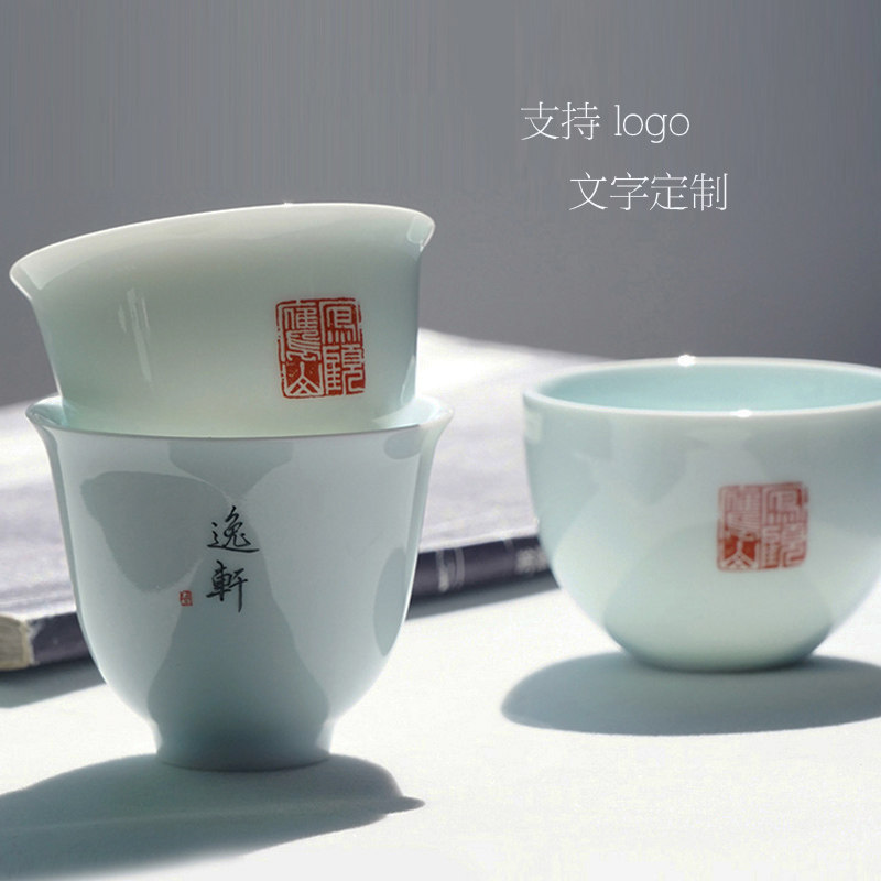 影青中式陶瓷茶杯定制刻字印logo景德镇个人品茗杯主人杯私人订制