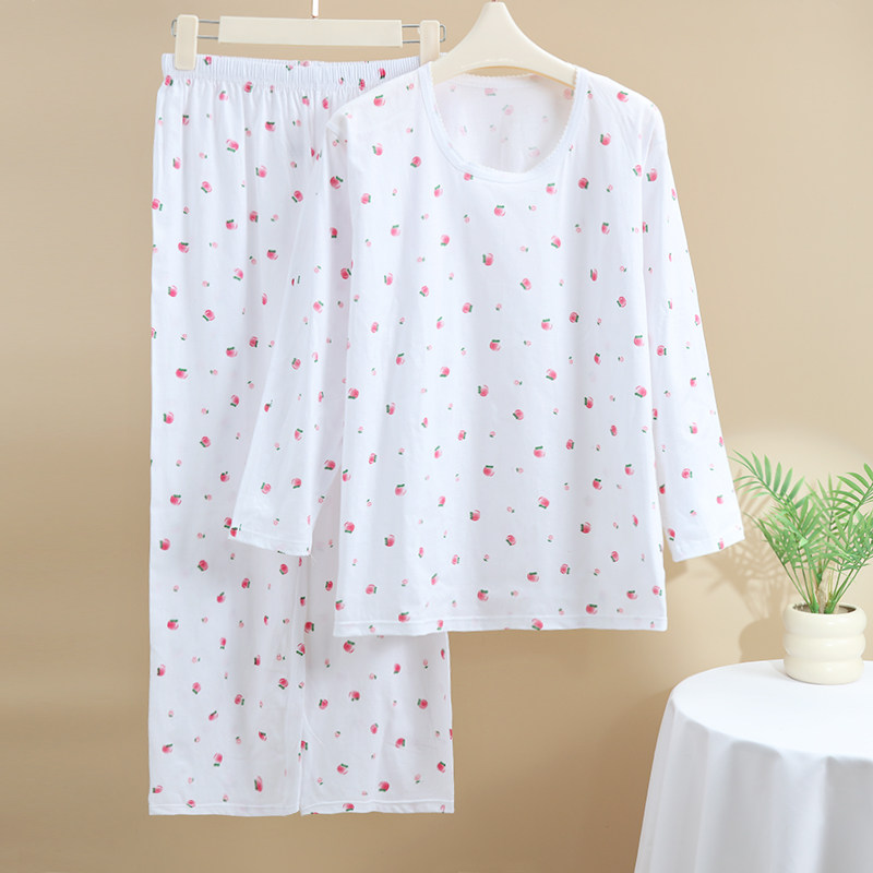 100%纯棉睡衣长袖长裤汗布汗衫夏季薄款中老年人全棉家居服套装