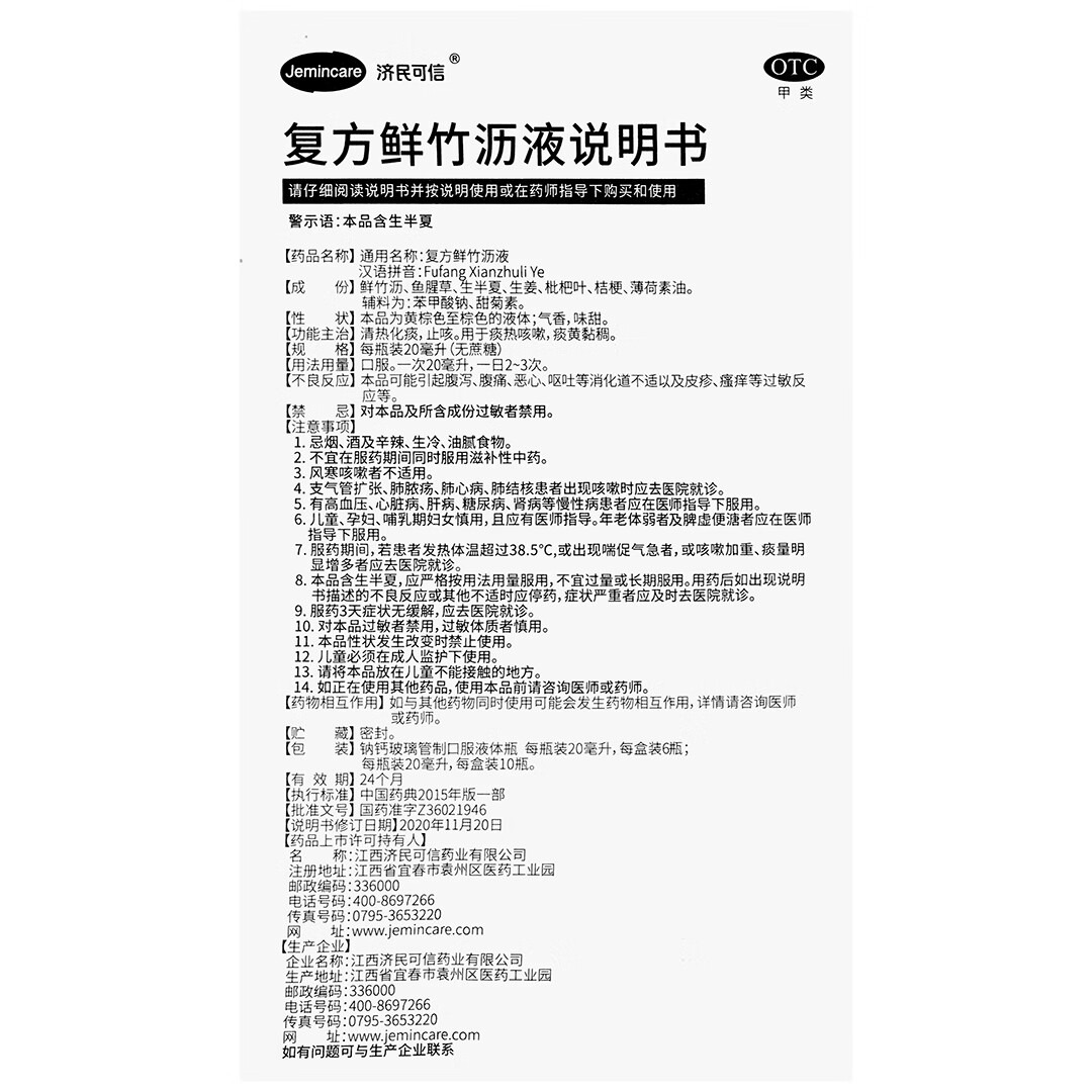 【济民可信】复方鲜竹沥液20ml*6瓶/盒