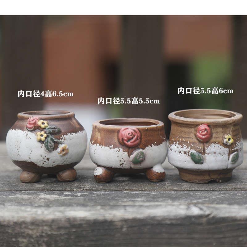 韩式多肉花盆粗陶流釉素烧拇指盆个性迷你陶瓷花盆透气小花盆包邮