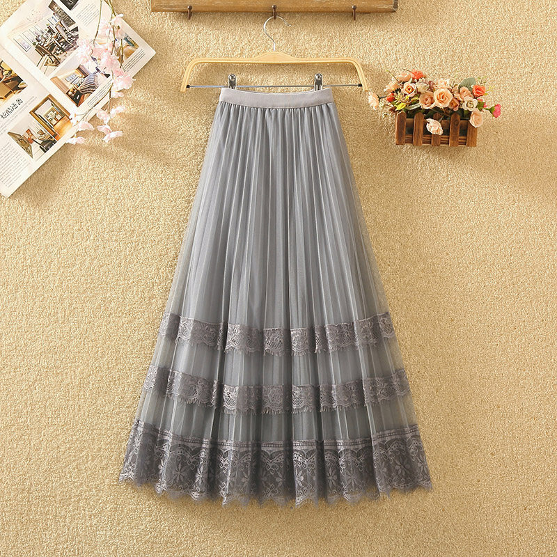 蕾丝网纱大摆仙女风百褶半身裙