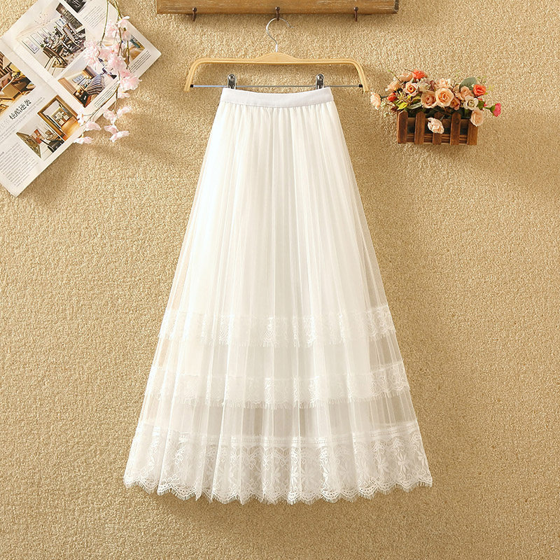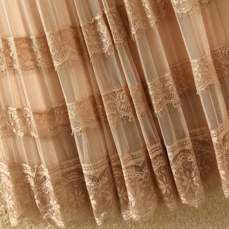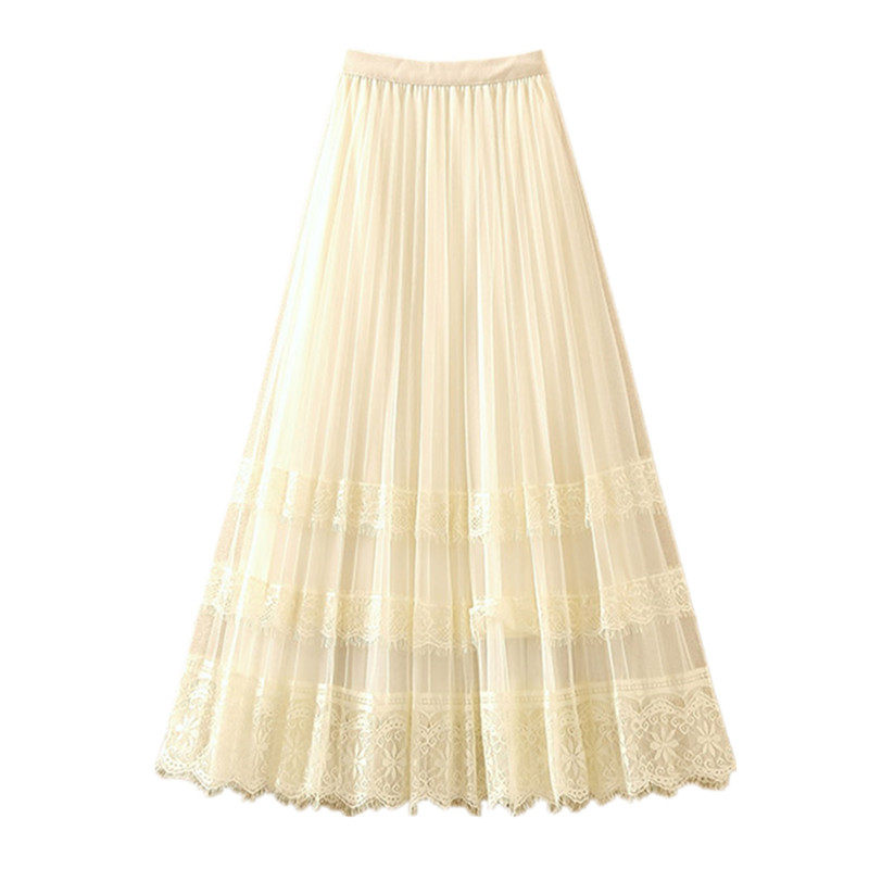 蕾丝网纱百褶半身裙女春夏中长款A字大摆纱裙蛋糕裙长裙仙女裙子