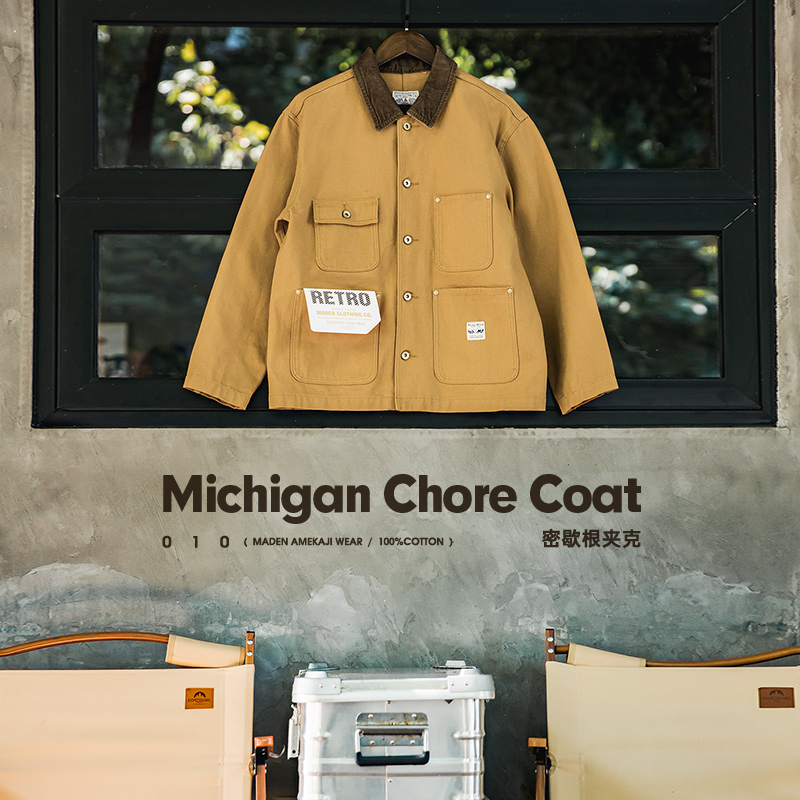 马登工装美式复古重磅密歇根帆布夹克翻领多口袋短款猎装外套男秋
