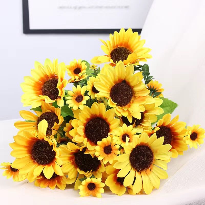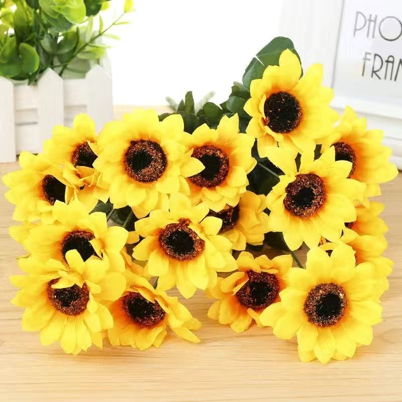 仿真小向日葵花客厅家居摆件太阳花假花绢布花摆设栅栏插花小花束