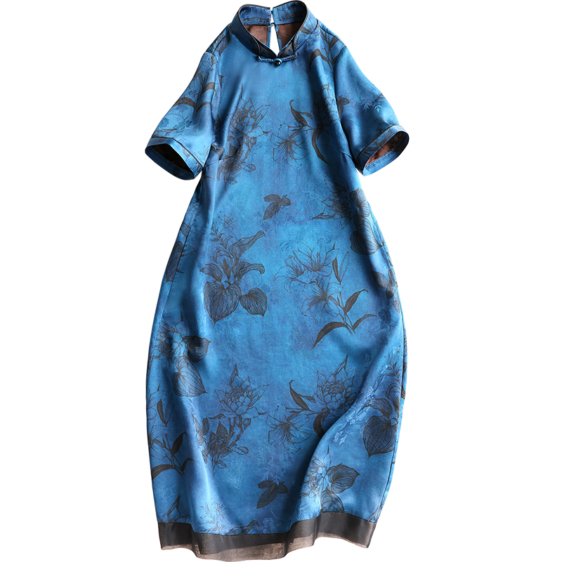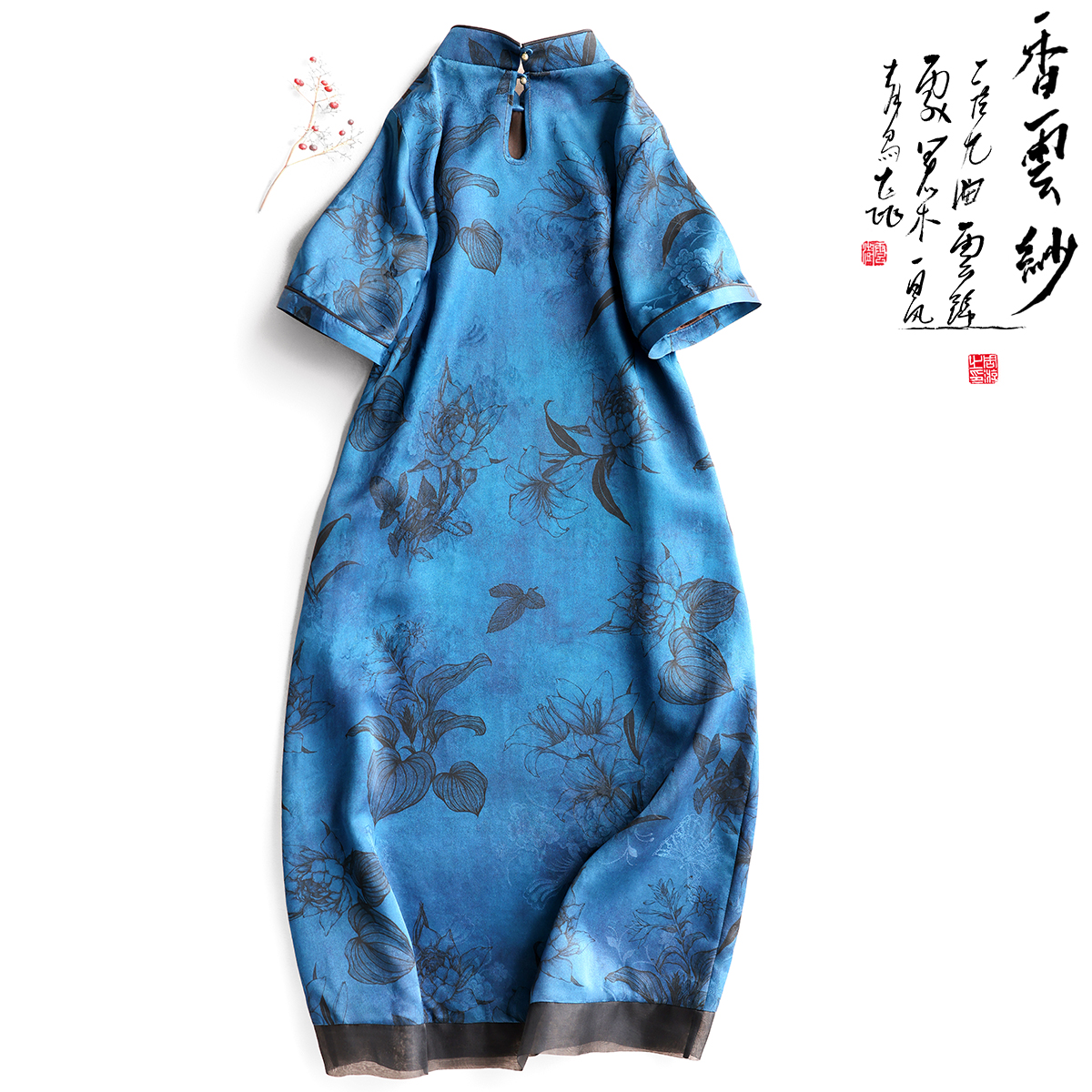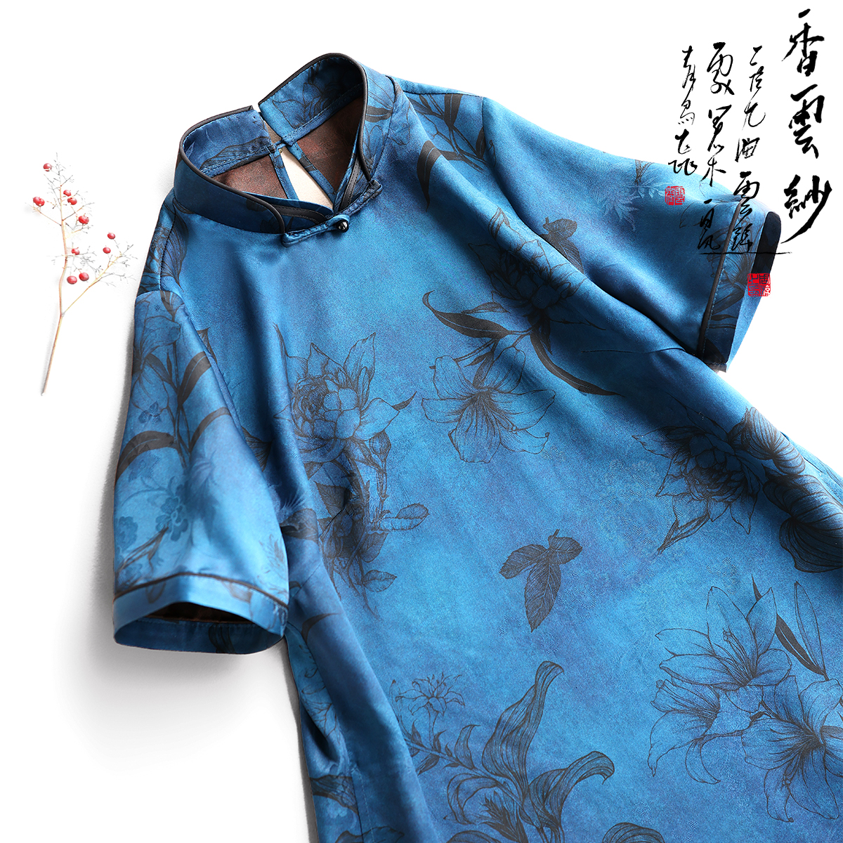 云澍原创花罗香云纱新中式改良真丝国风印花时尚日常旗袍连衣裙夏