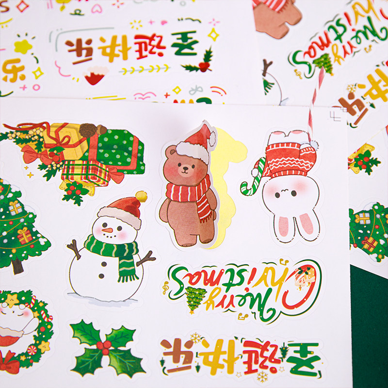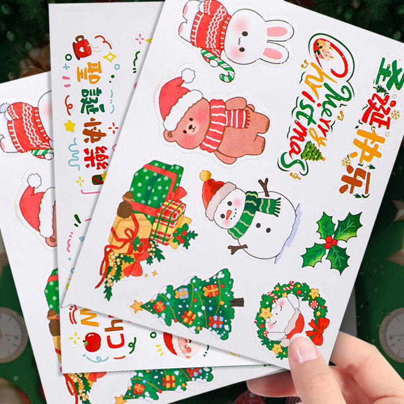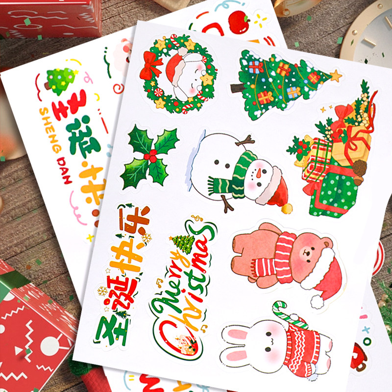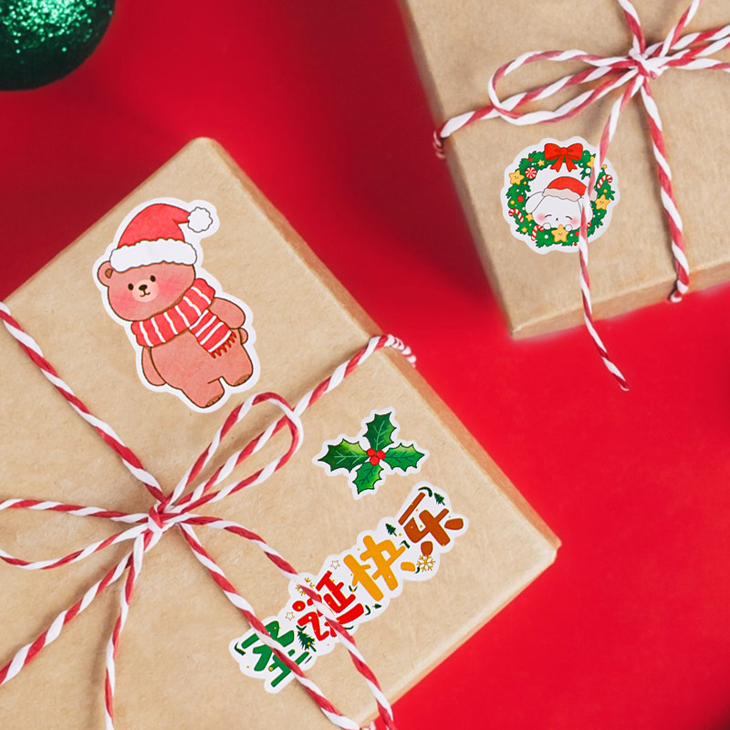 2025圣诞节烘焙蛋糕甜品包装盒卡通圣诞老人礼物不干胶贴纸插件