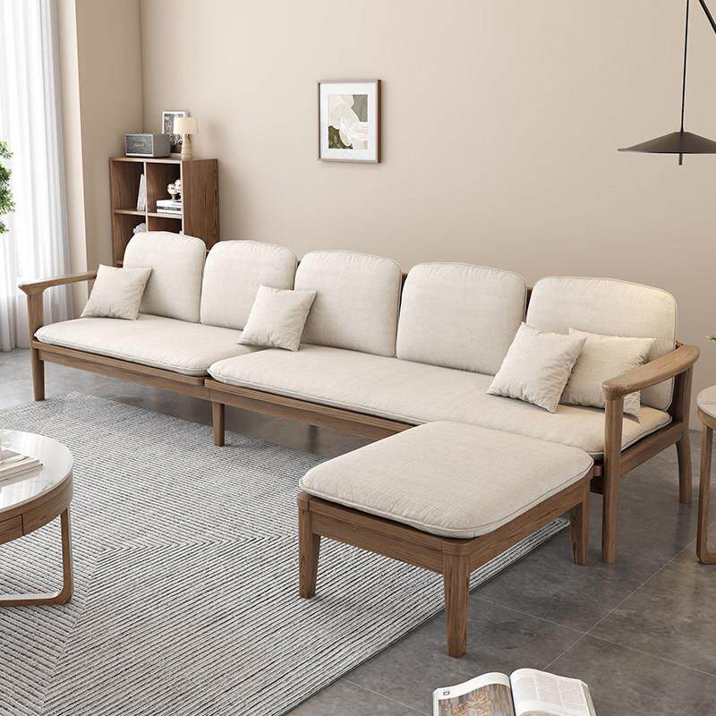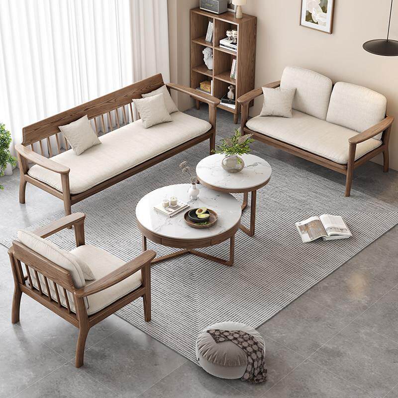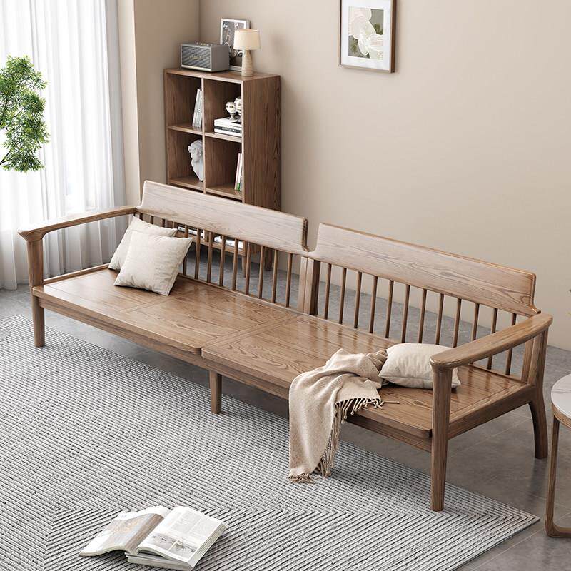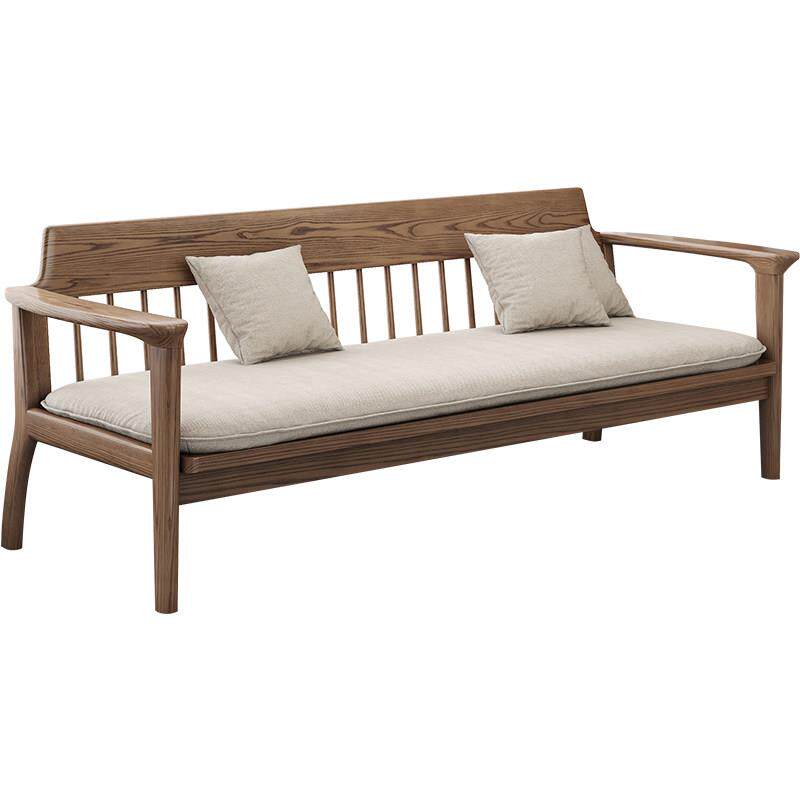 新中式实木布艺沙发组合小户型客厅简约现代白蜡木冬夏两用三人位