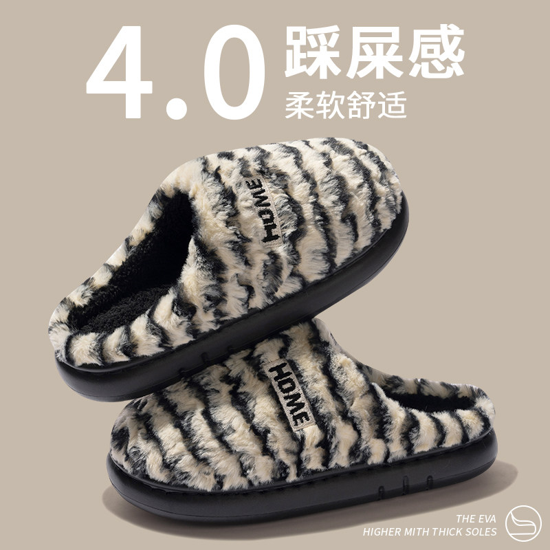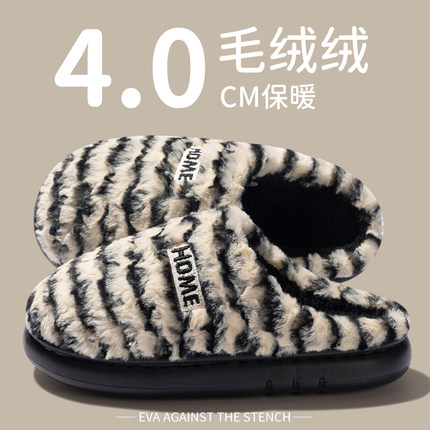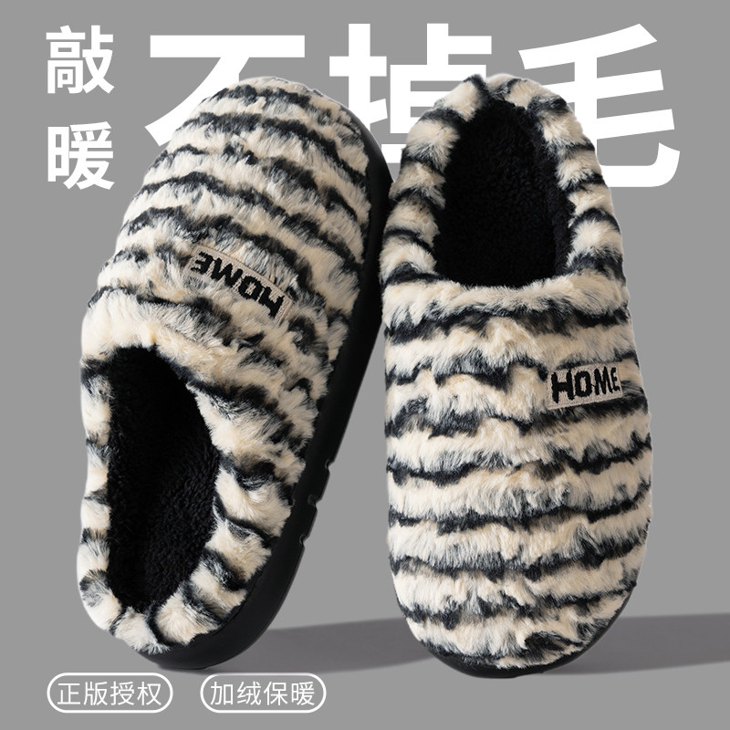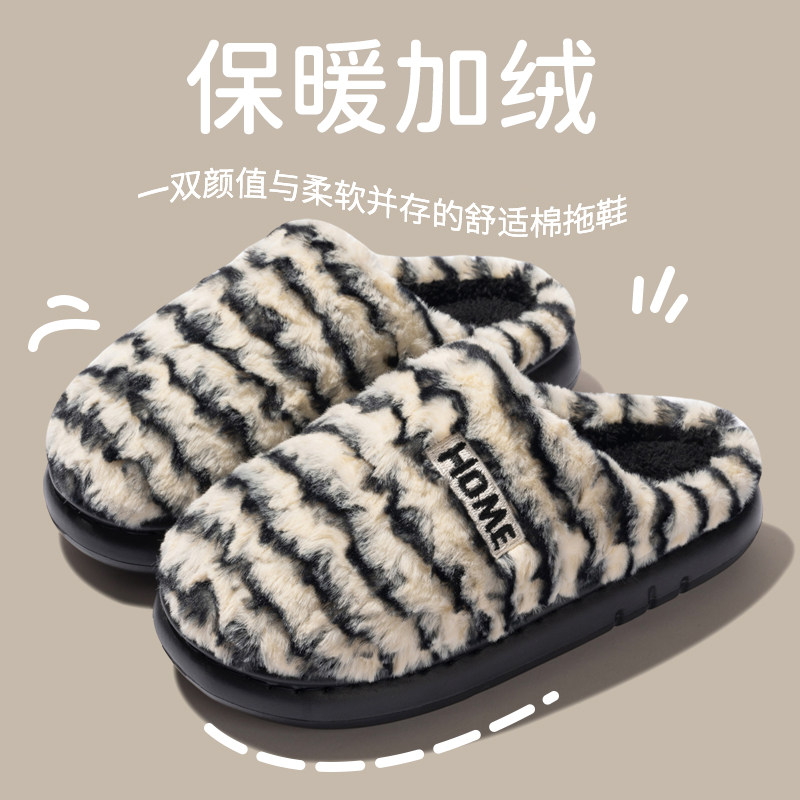 保暖加绒棉拖鞋男士厚底防滑秋冬季2025新款家居室内情侣毛毛拖鞋