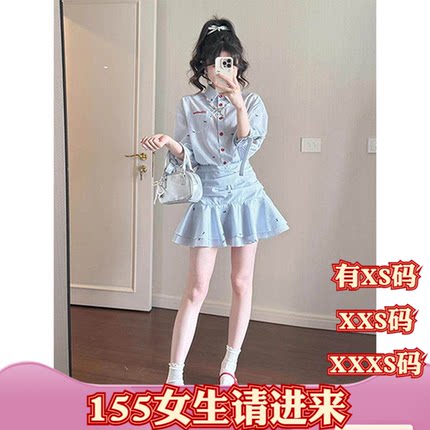 小个子女装春装150cm显高加小码XXXS系衬衫连衣裙女收腰百褶短裙