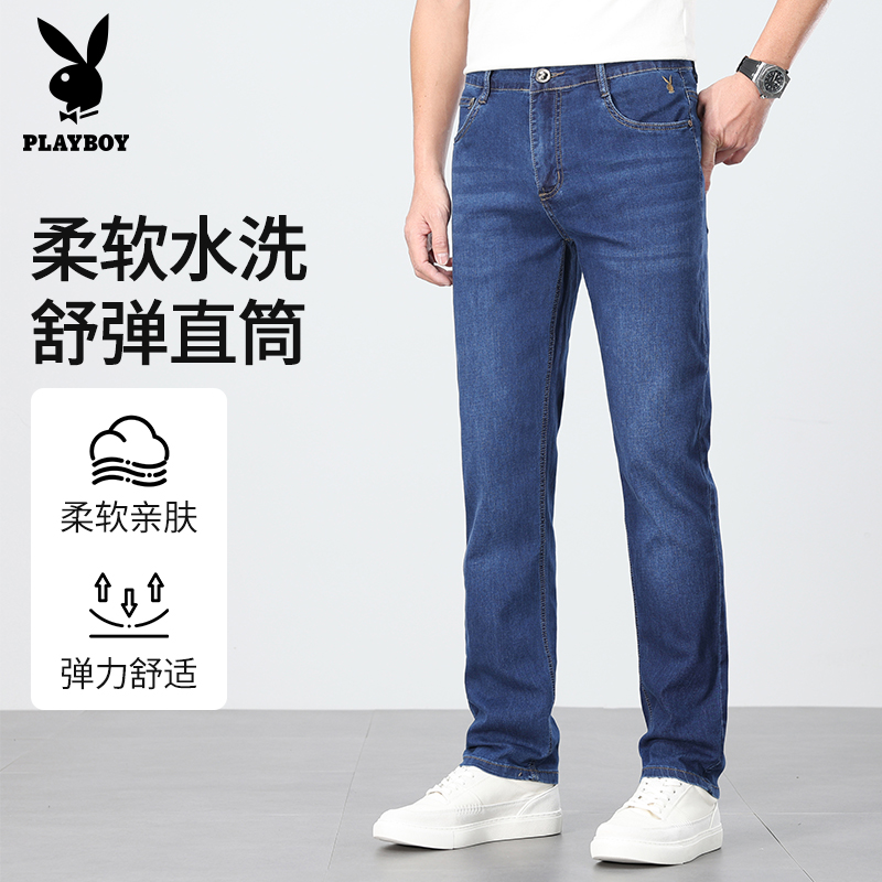 花花公子牛仔裤男款夏季薄款宽松直筒高腰2025新款男士长裤子春夏