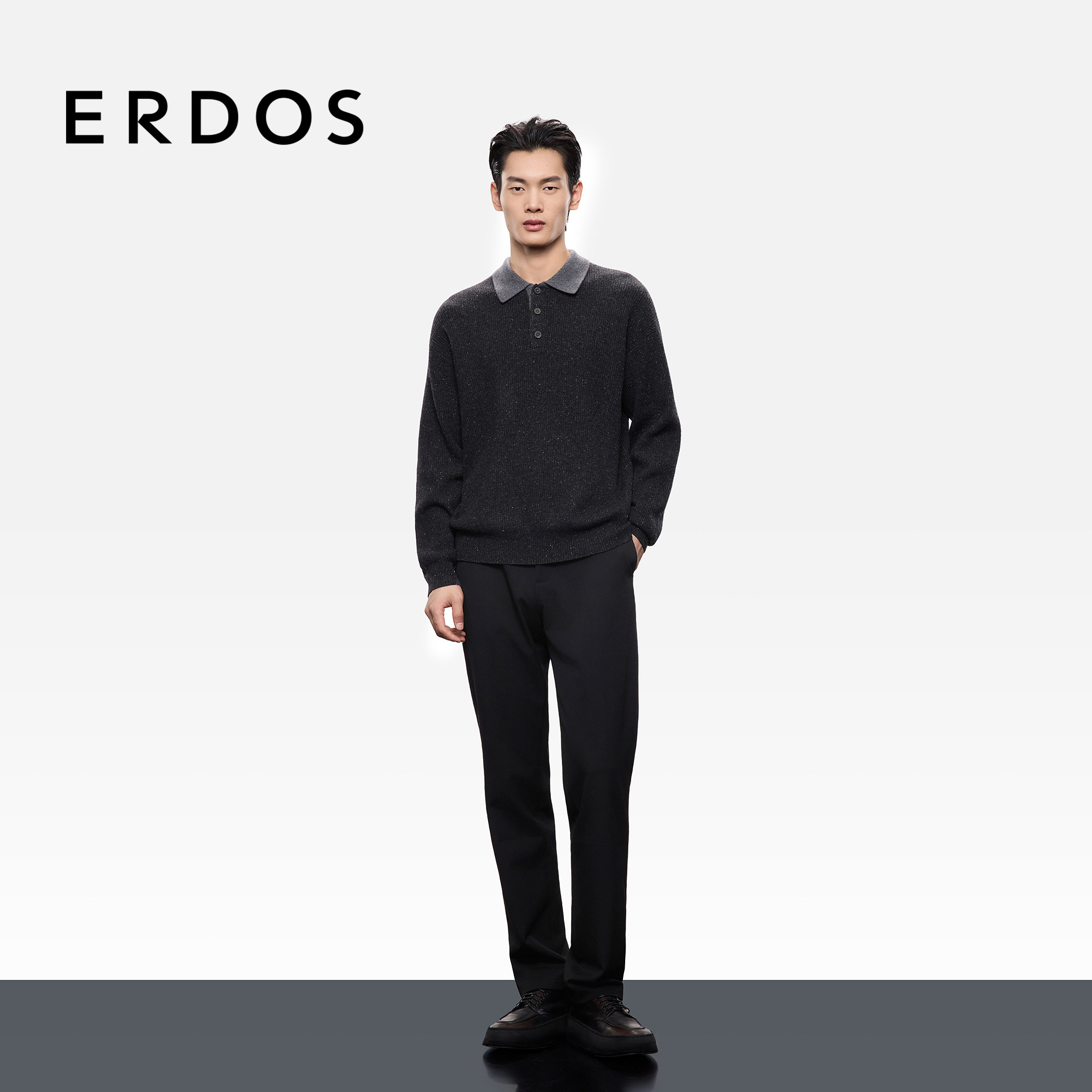 ERDOS 男装撞色小翻领双畦羊绒衫25年秋冬新品厚款商务休闲针织衫