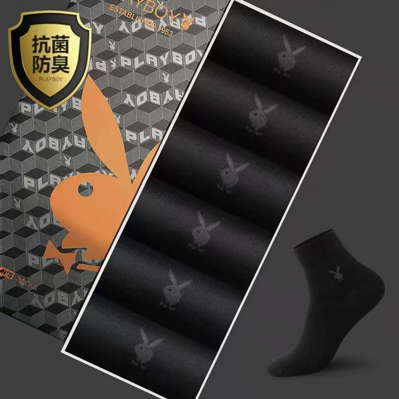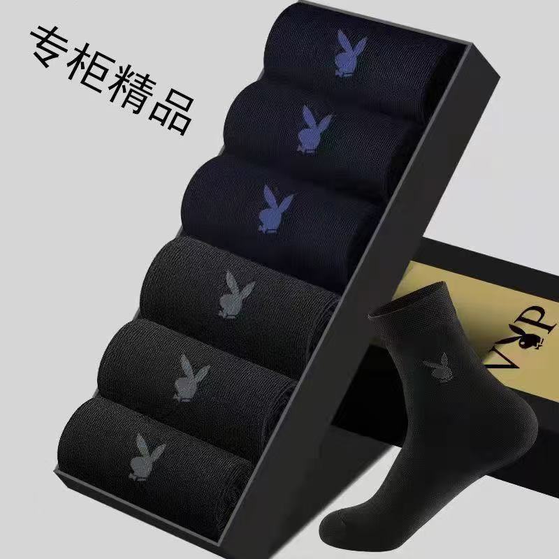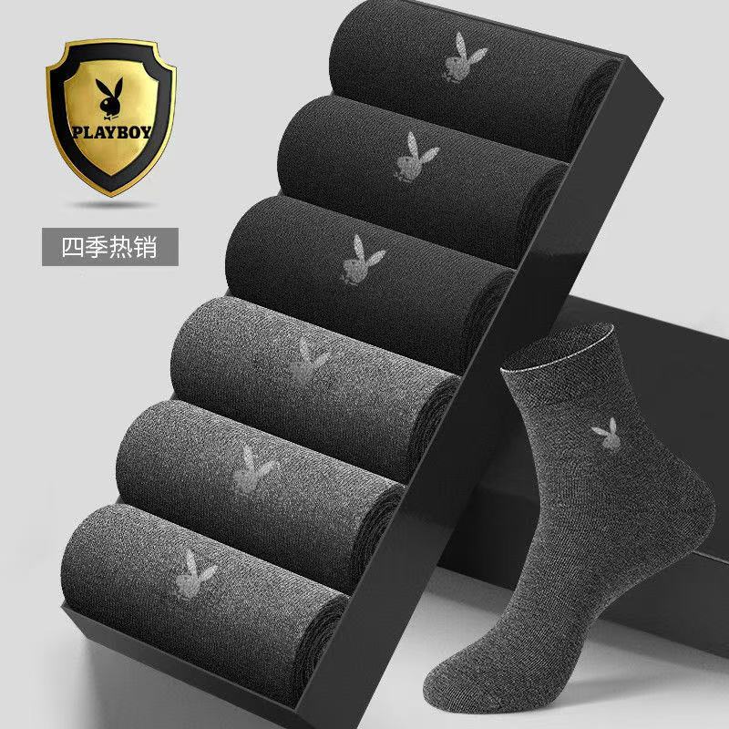 花花公子男士纯棉透气中筒袜