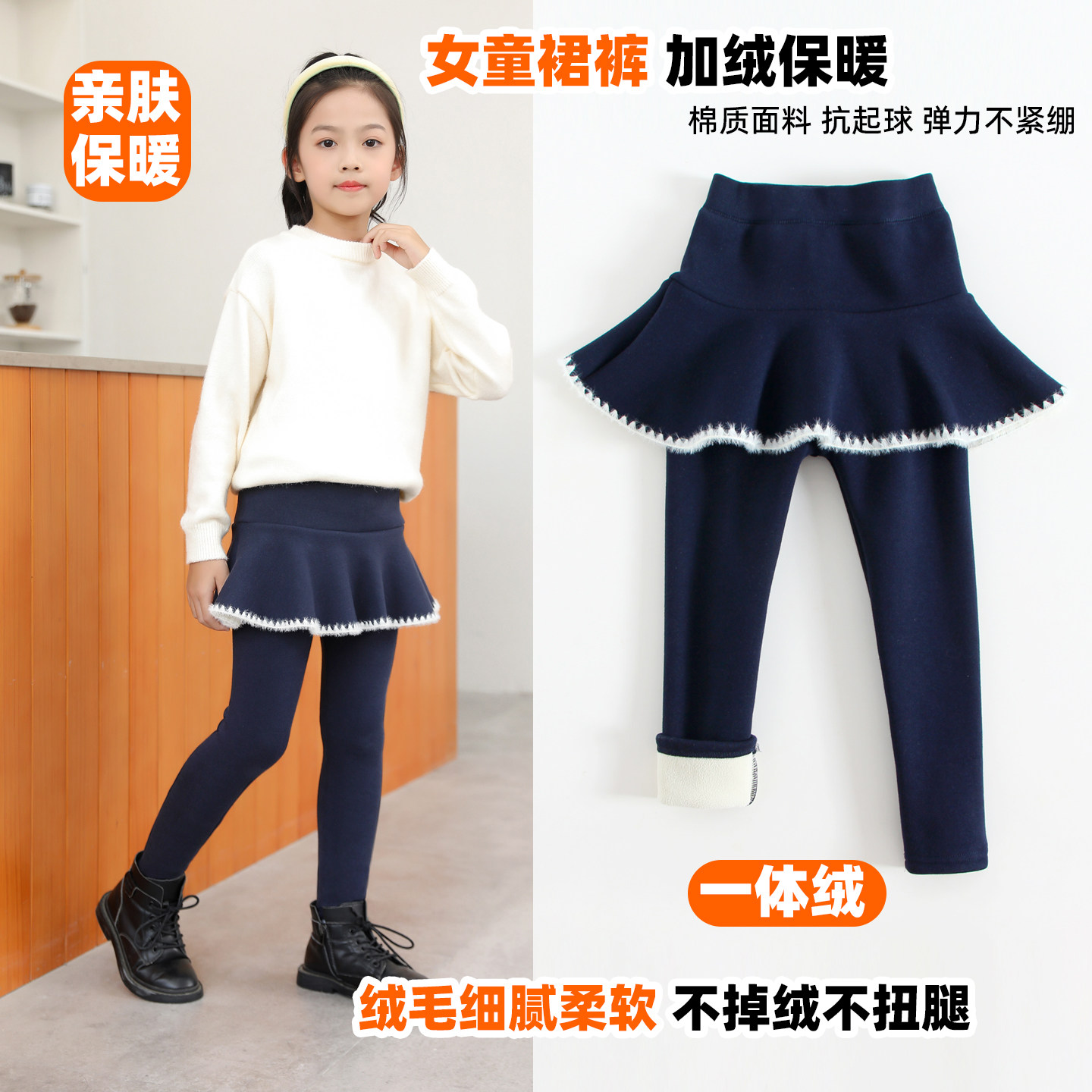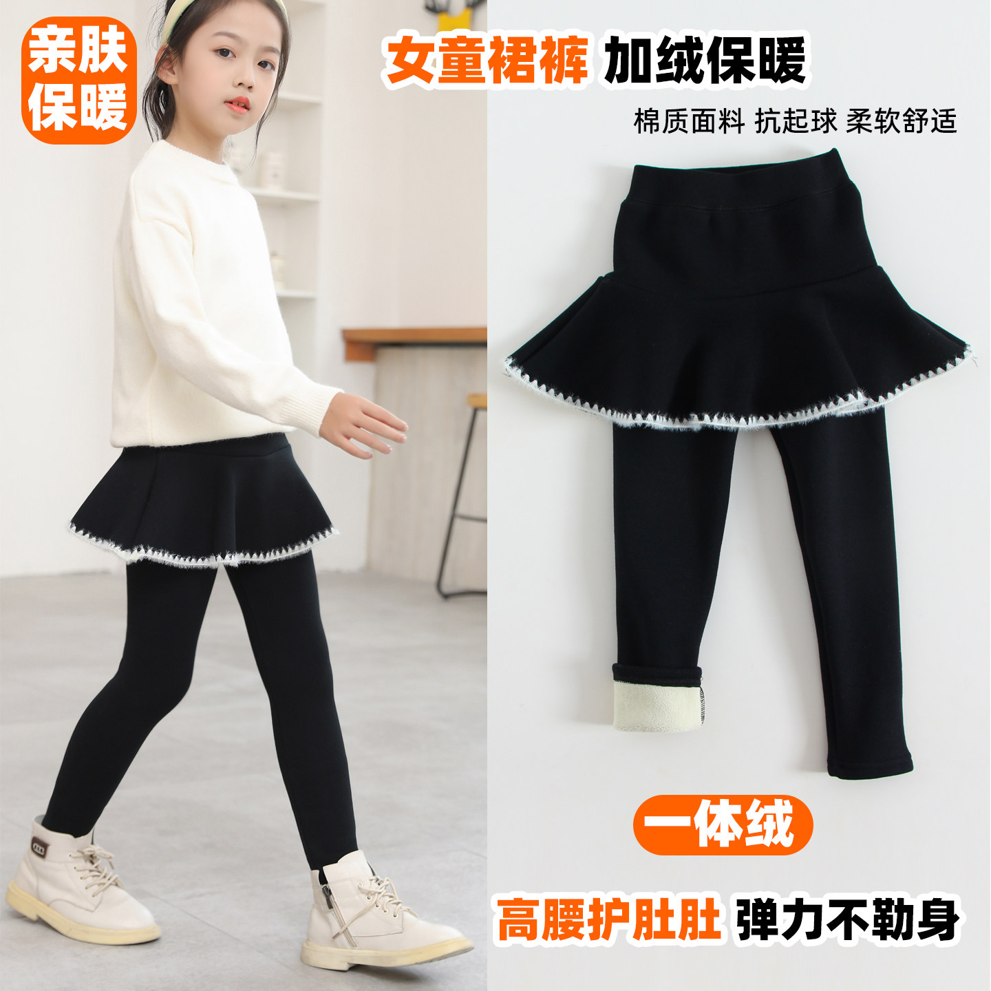 女童裙裤加绒加厚纯棉外穿保暖裤