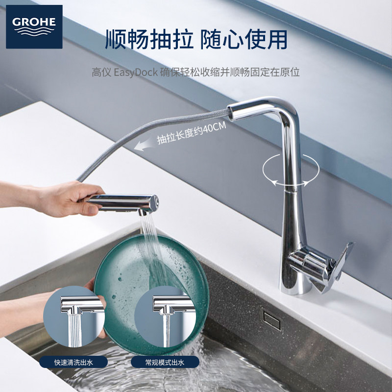 高仪(GROHE)进口冷热水厨房可抽拉水槽龙头吉达拉系列 3255320C