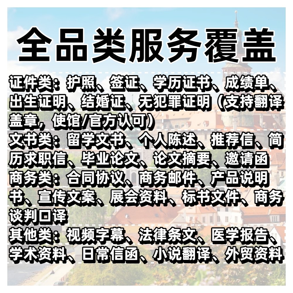专业捷克语人工翻译 证件合同论文留学文书 中捷互译加急高效