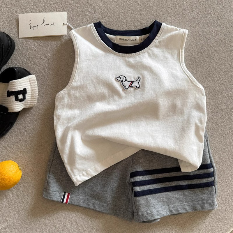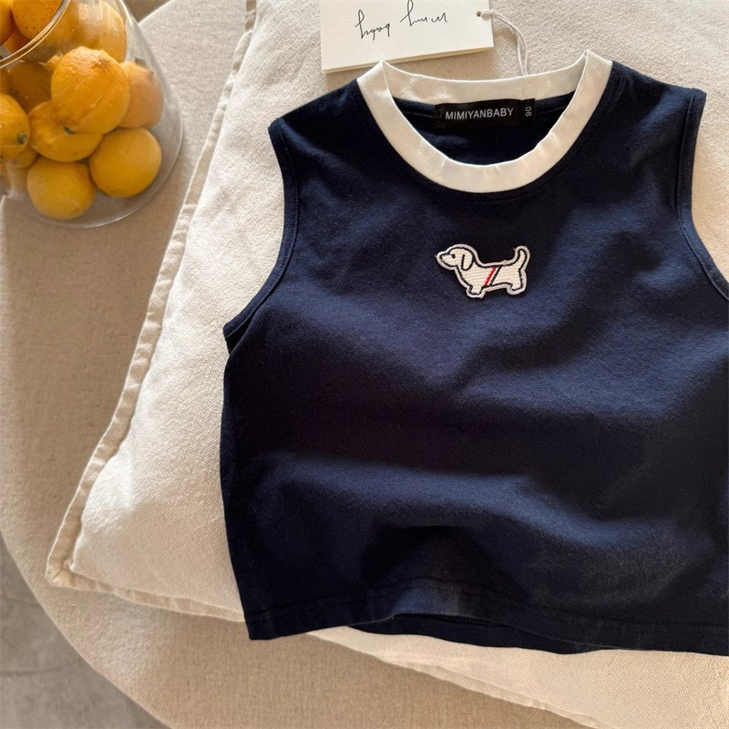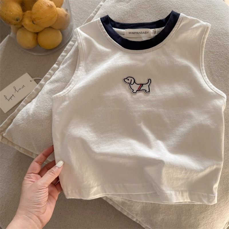 儿童夏季纯棉卡通无袖上衣男女童宝宝洋气小狗刺绣透气百搭背心
