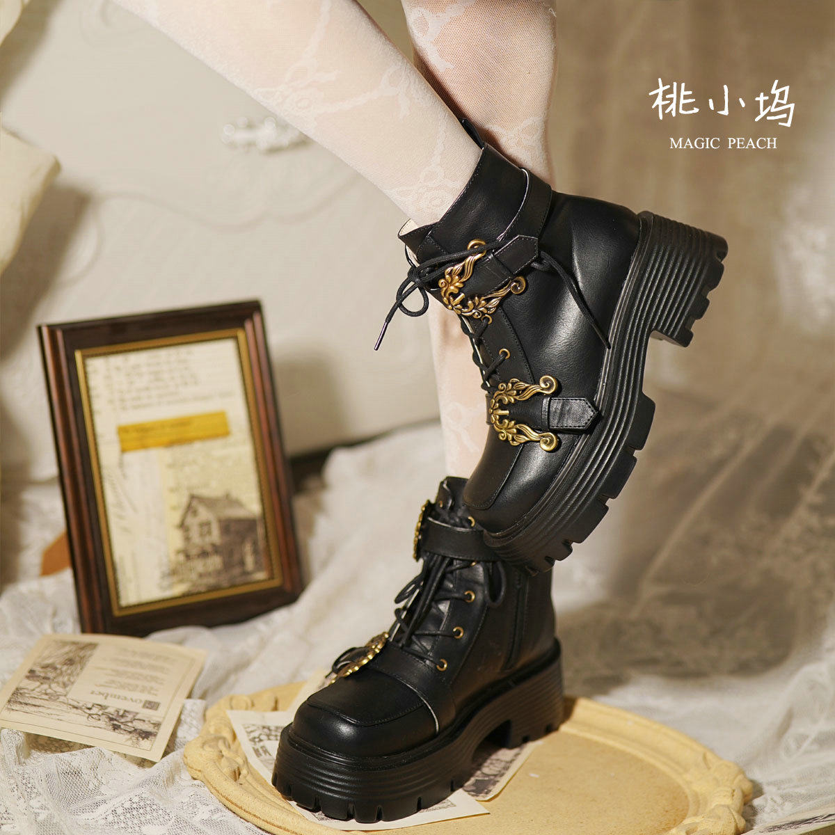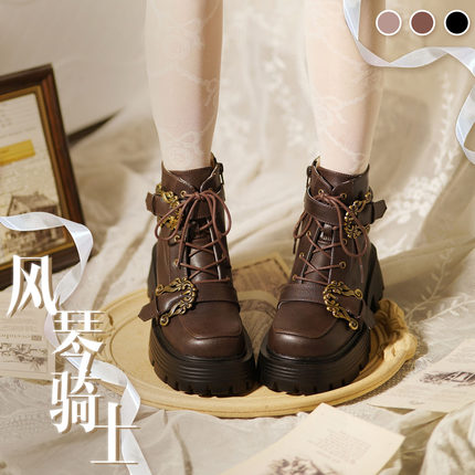 风琴骑士桃小坞原创lolita短靴加厚马丁靴女棕色复古秋冬季lo鞋