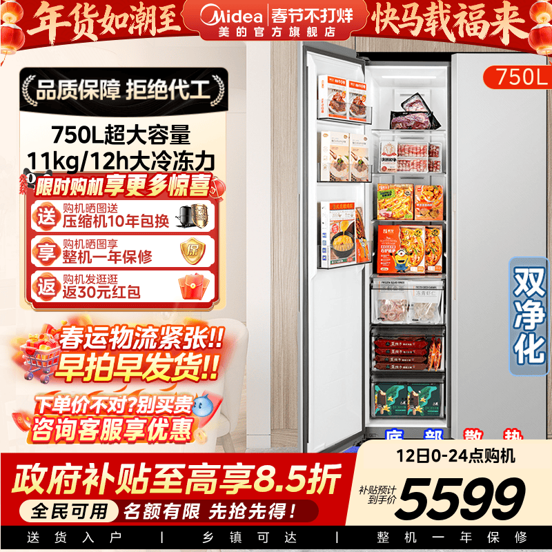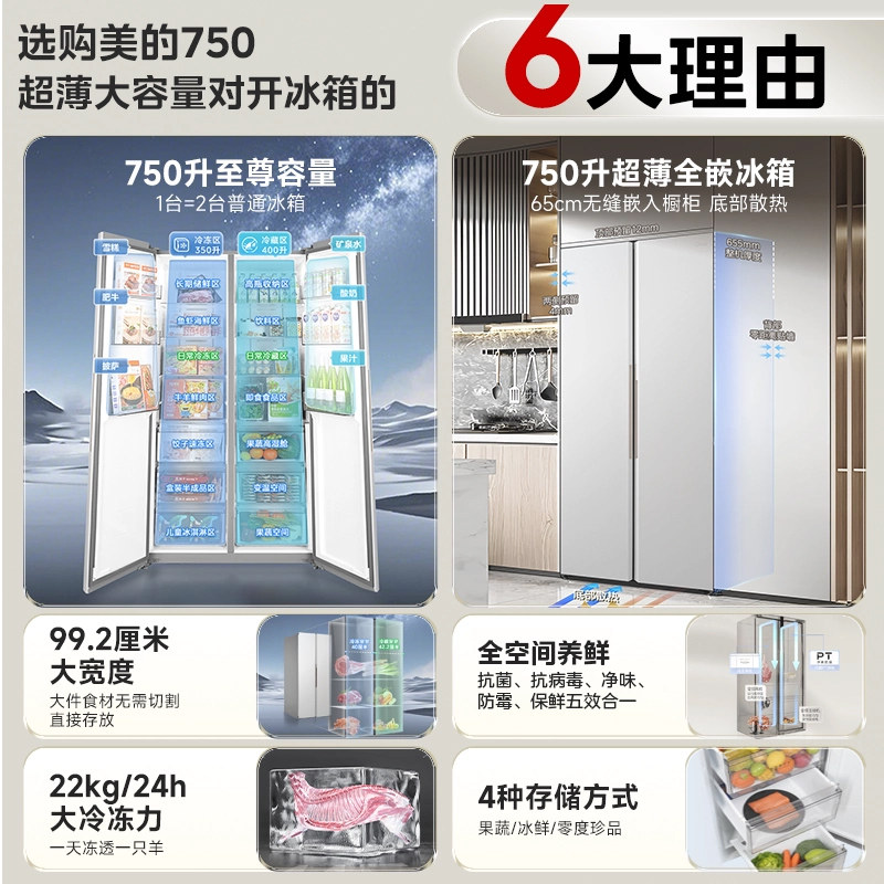【大嵌】美的750对开双开门家用电冰箱大容量超薄全嵌风冷无霜