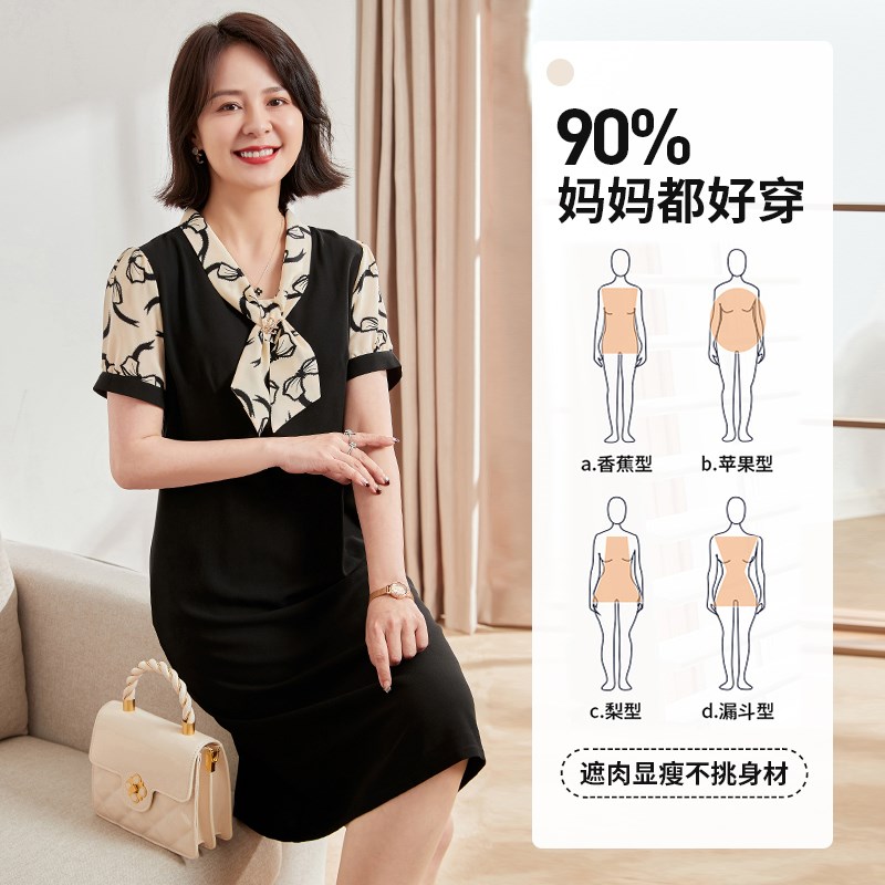 妈妈夏装雪纺连衣裙洋气时尚2024新款中老年女装高贵气质夏季裙子
