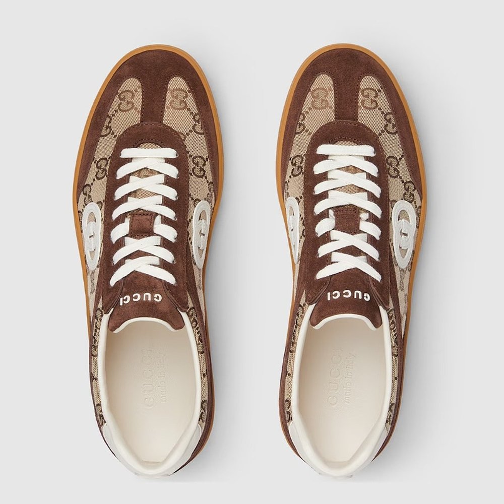 自营欧洲直邮Gucci/古驰 G75系列男士深棕色麂皮互扣式双G运动鞋