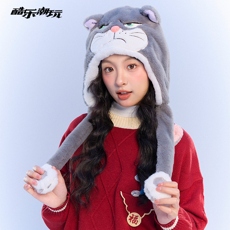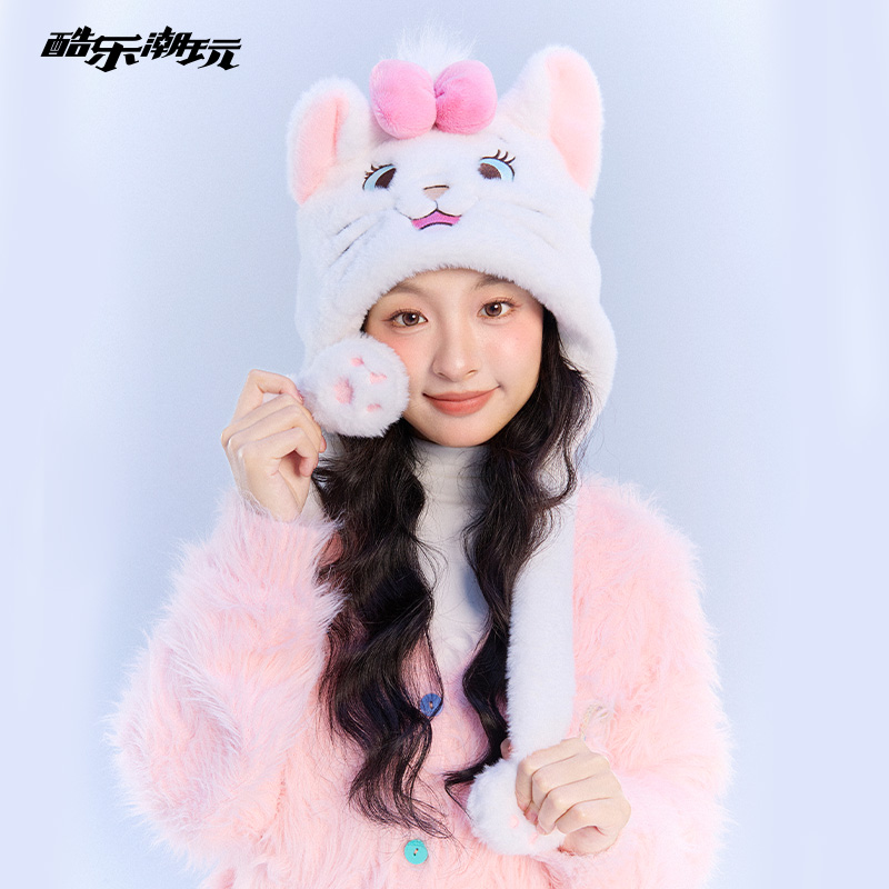 酷乐潮玩迪士尼立体动耳帽路西法灰玛丽猫白可爱趣味仙气保暖帽子