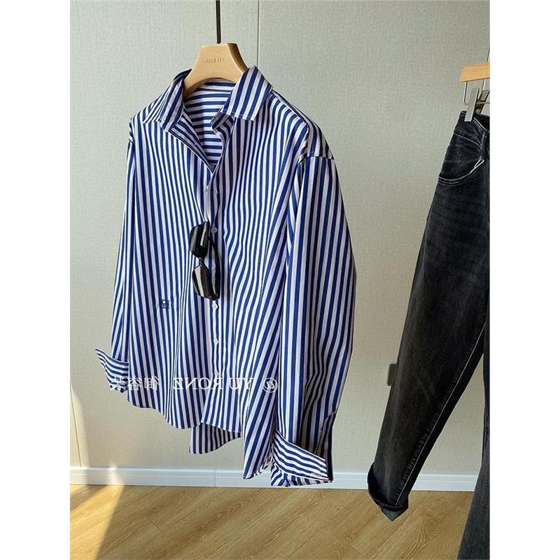 请果断收,秒收!搭配度狂高亚麻条纹廓形男友风长袖衬衫上衣