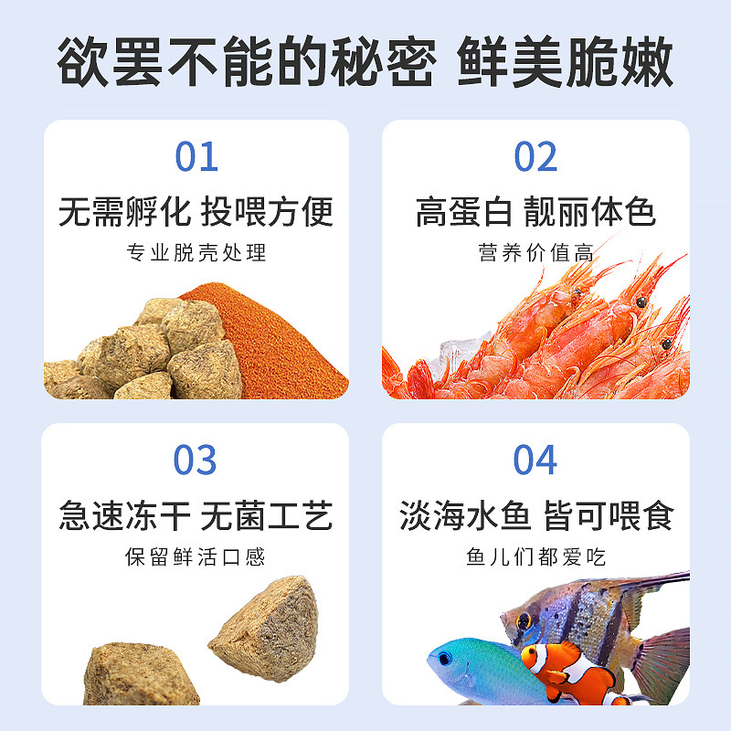 百因美丰年虾块虾卵小型孔雀鱼饲料鱼食冰冻观赏鱼七彩鱼粮下沉
