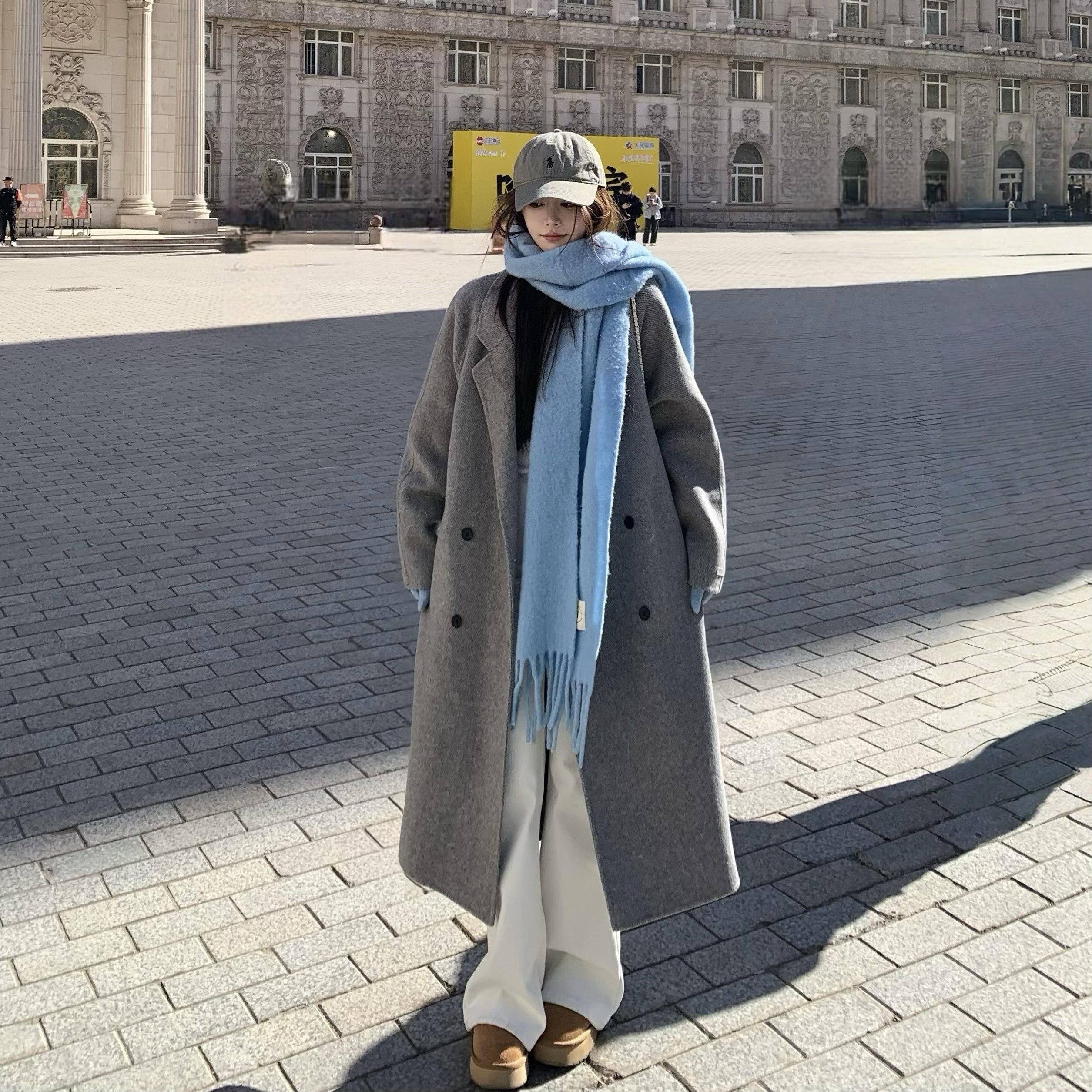 3MER哦哦三妹 羊毛双面呢大衣女2025秋冬新款韩系中长款毛呢外套