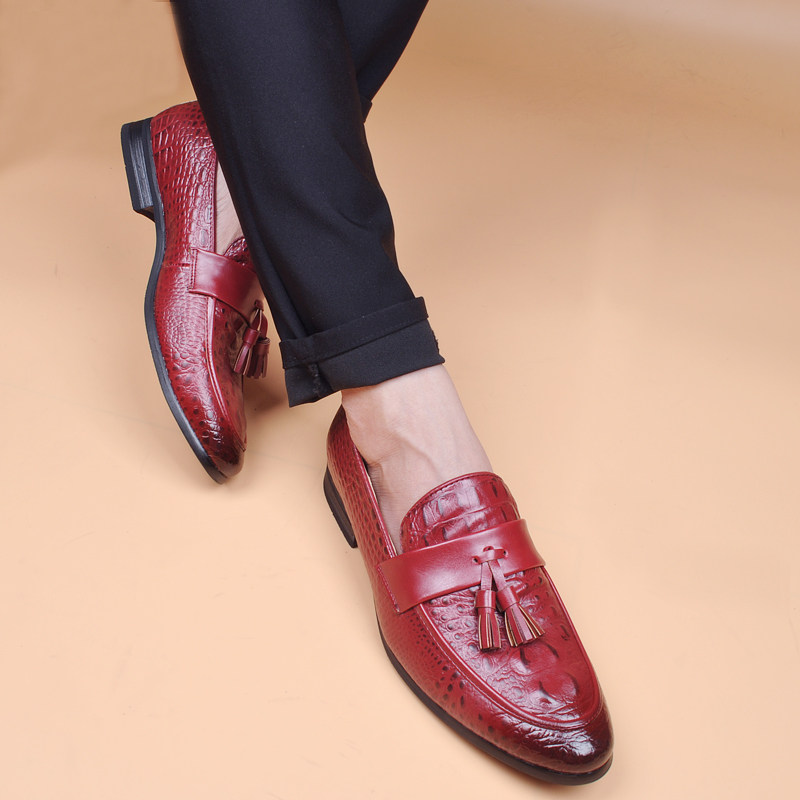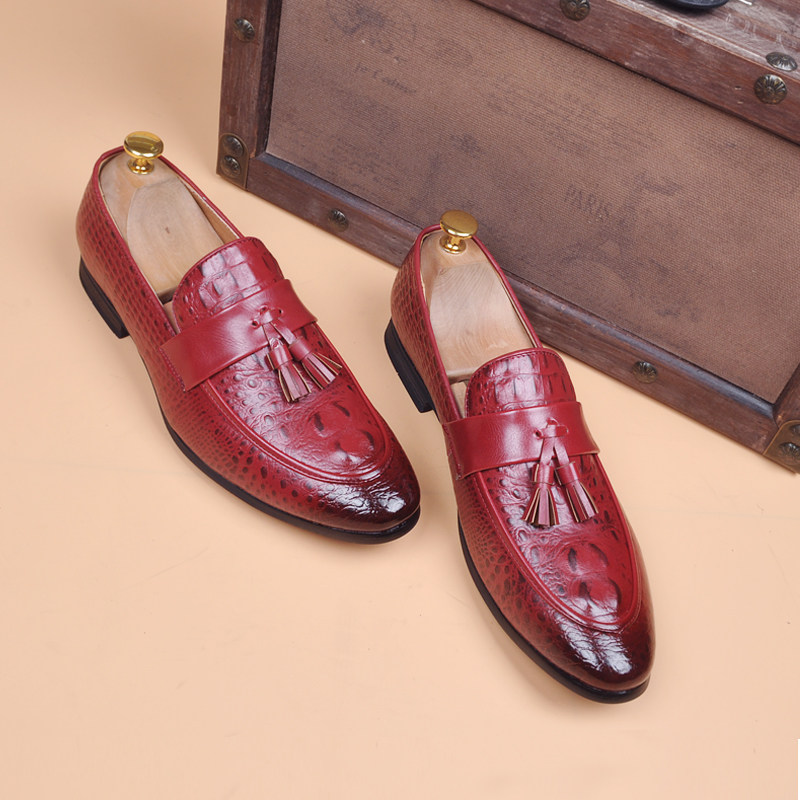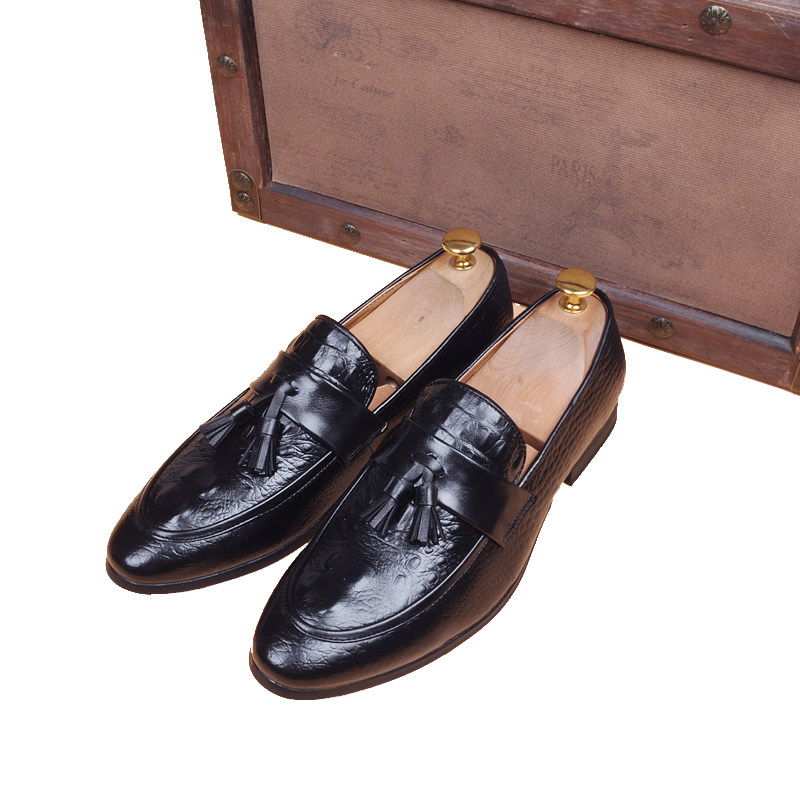 韩版潮流男鞋鳄鱼纹雕花尖头皮鞋
