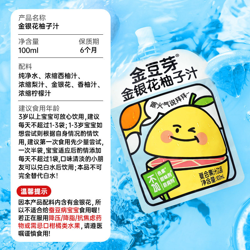 金豆芽金银花柚子汁小孩果汁饮料小袋清火饮品健康无添加单袋装