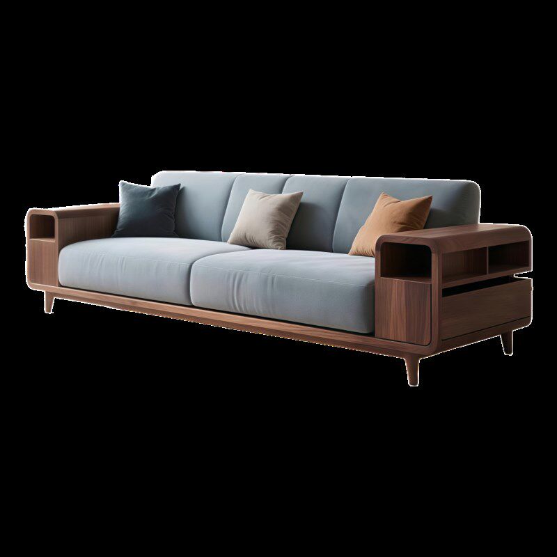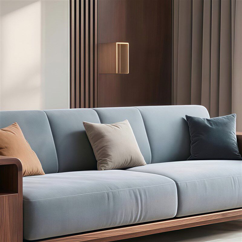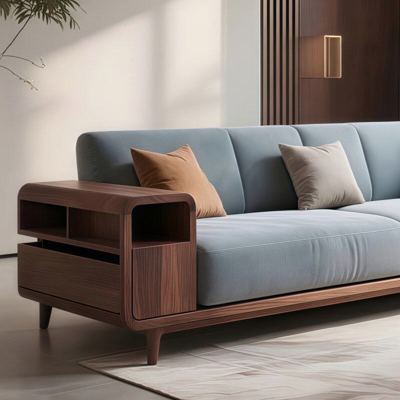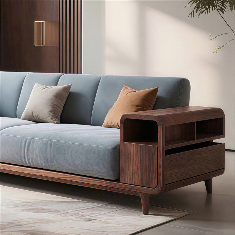 中古风实木客厅三人沙发意式极简2025新款别墅R办公会所北美胡桃