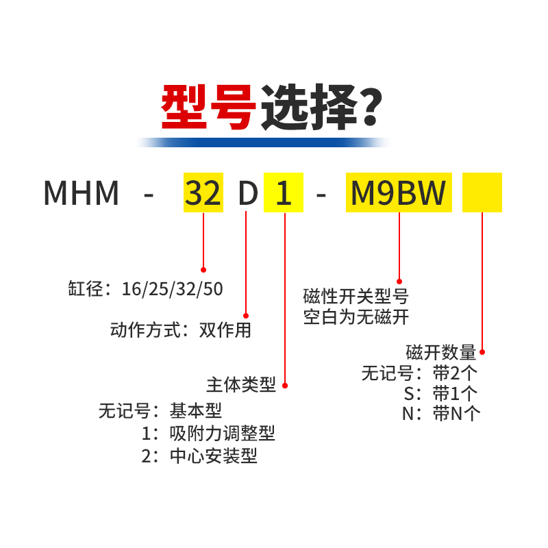 SMC型 MHM-16D MHM-25D MHM-32D MHM-50D/D1/D2/磁力吸盘磁铁气缸